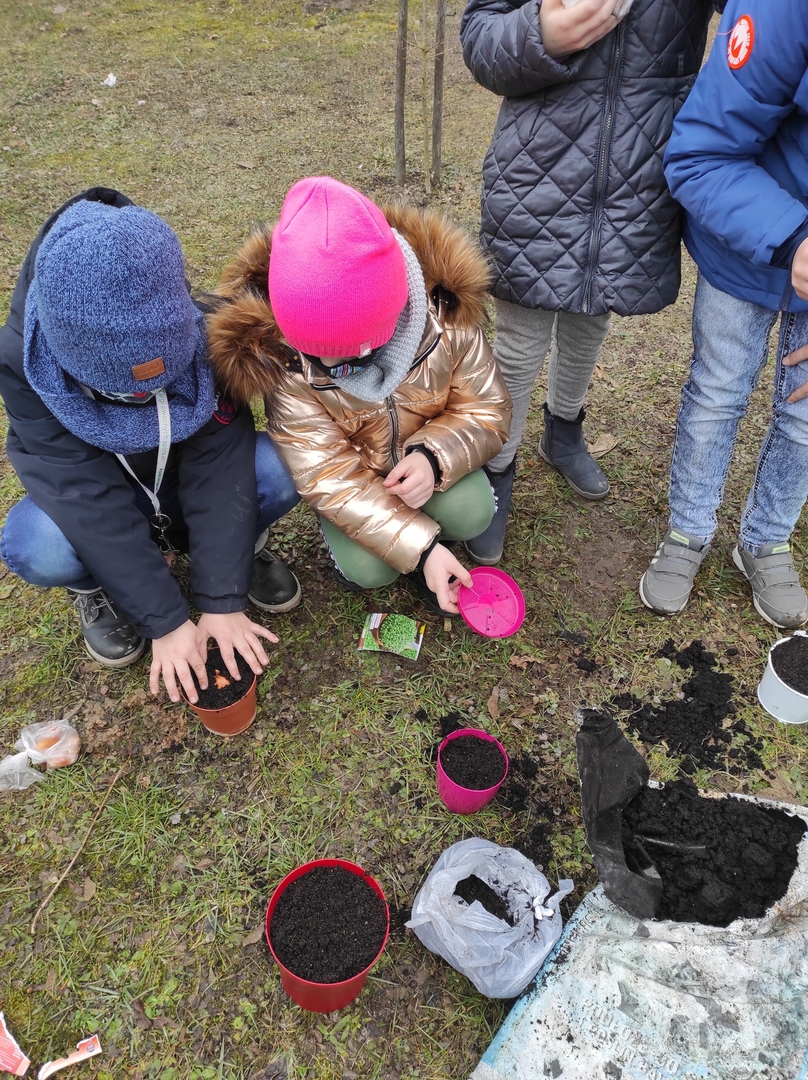 Uczniowie klasy I w poszukiwaniu wiosny, zabrali się za sadzenie i sianie roślin już na początku marca. Po kilku dniach powitaliśmy wiosnę "na parapecie".