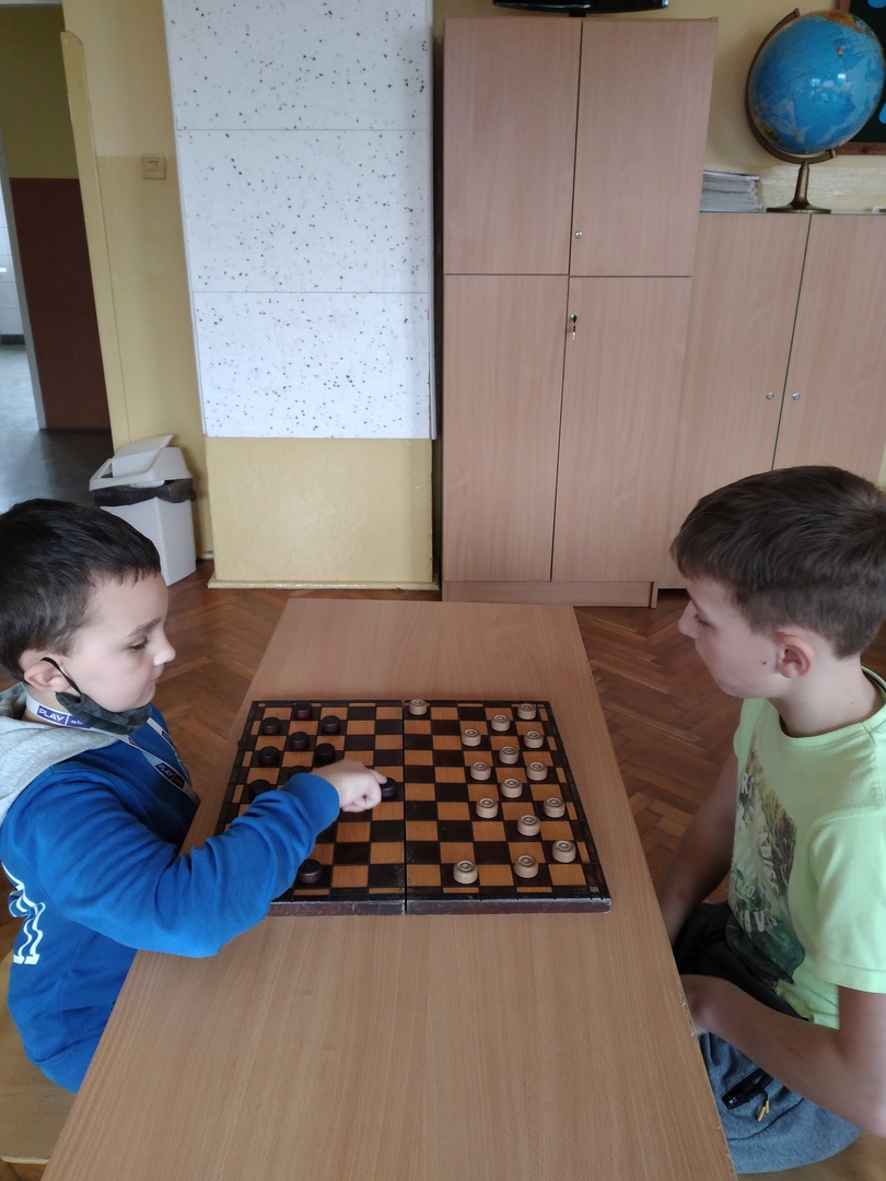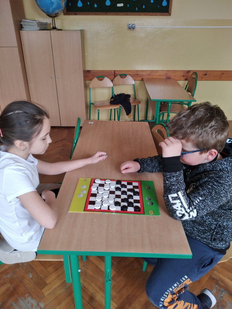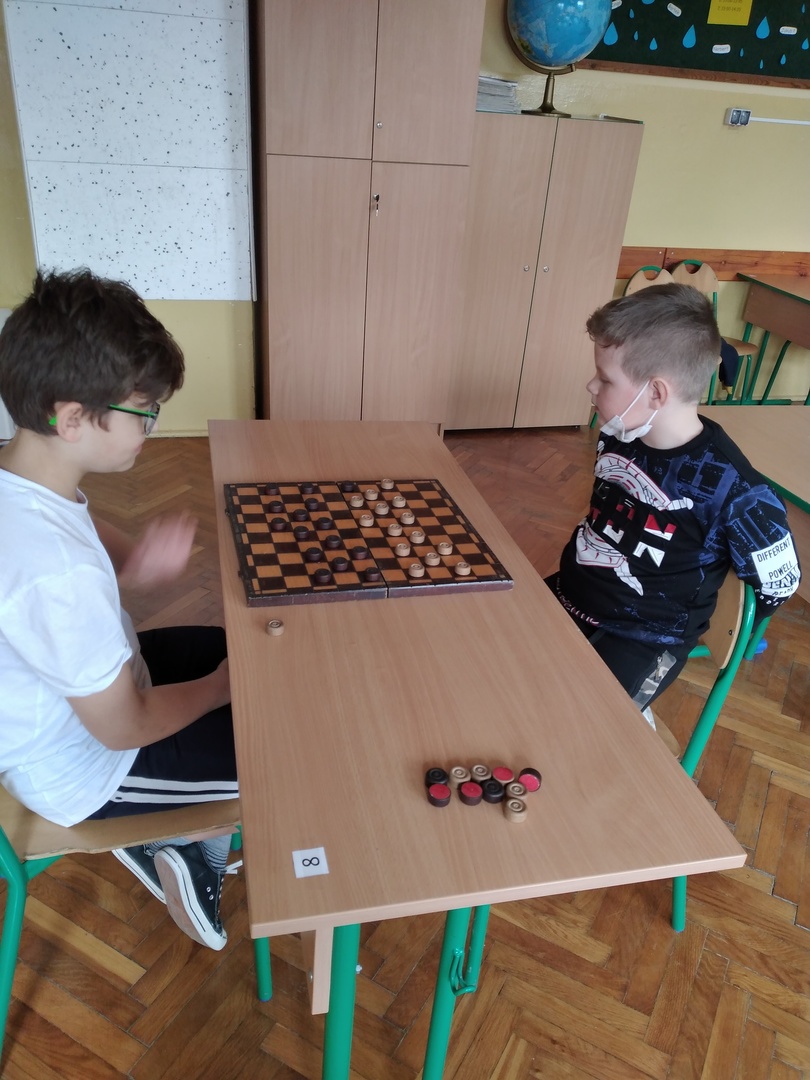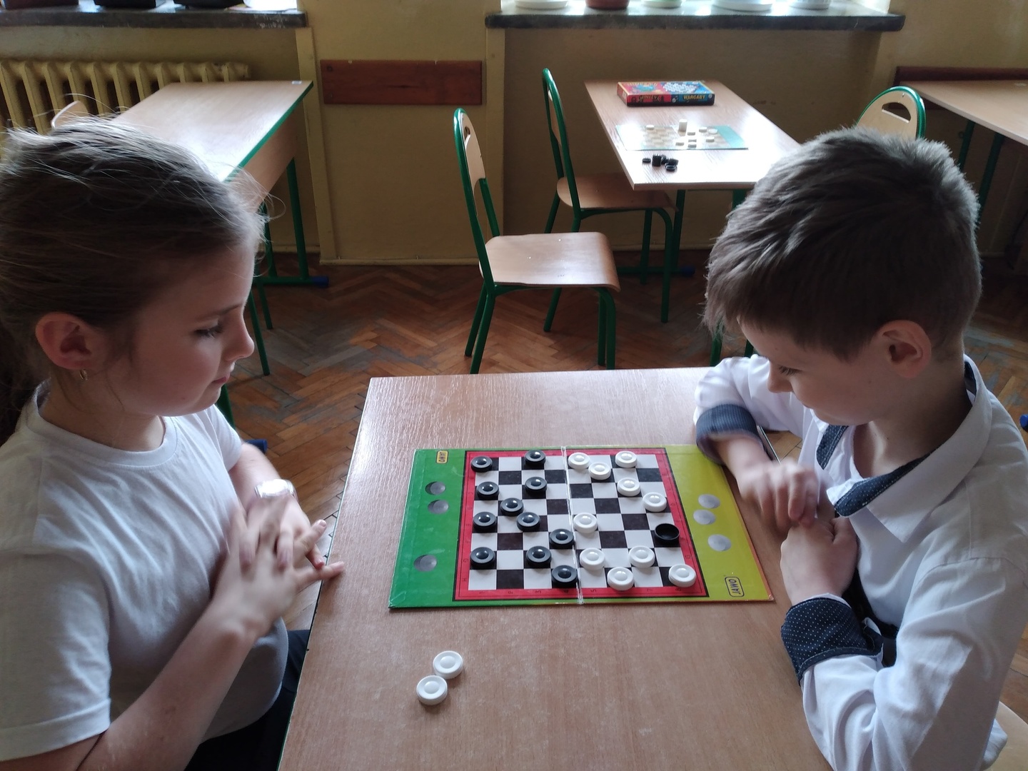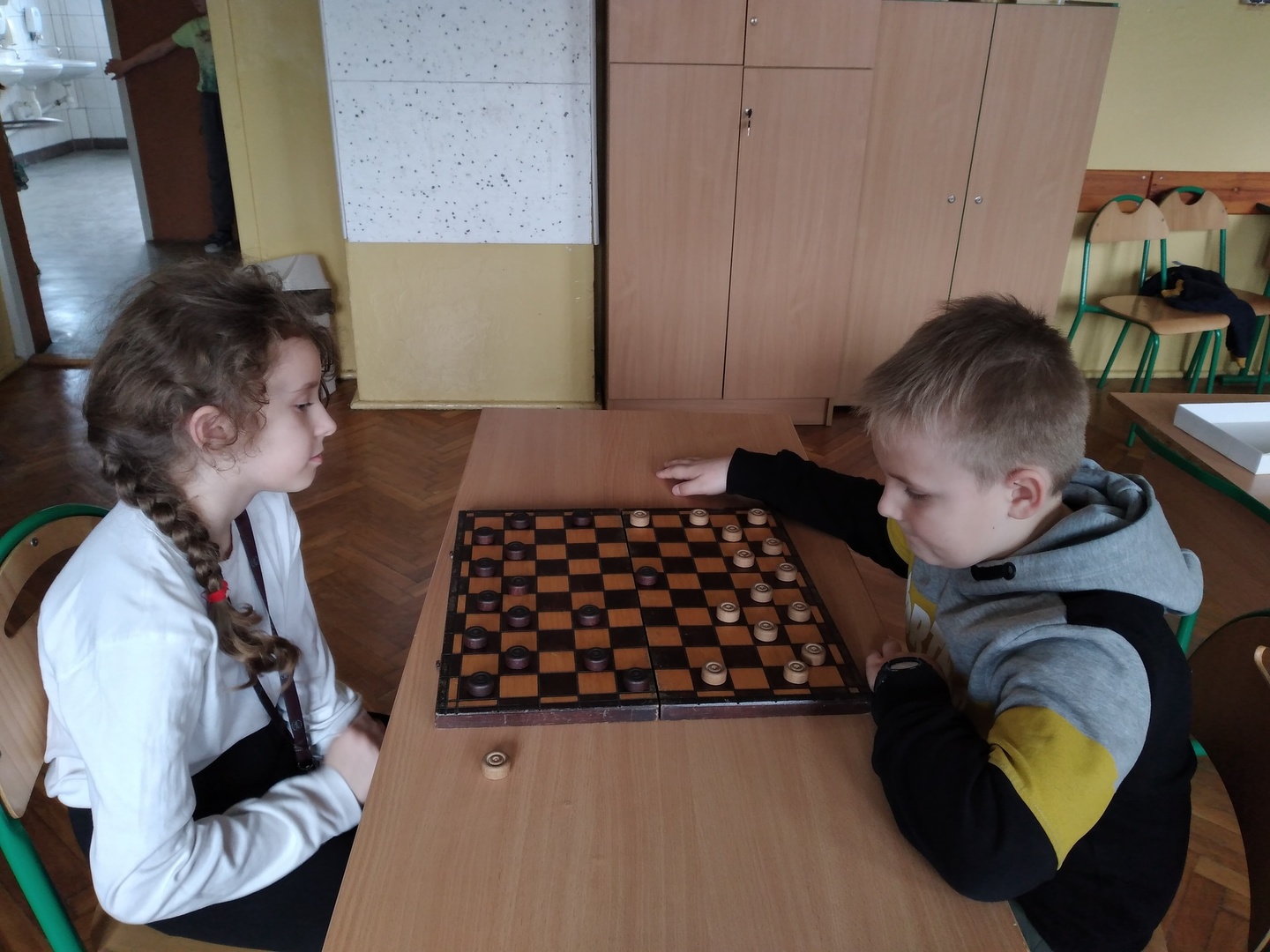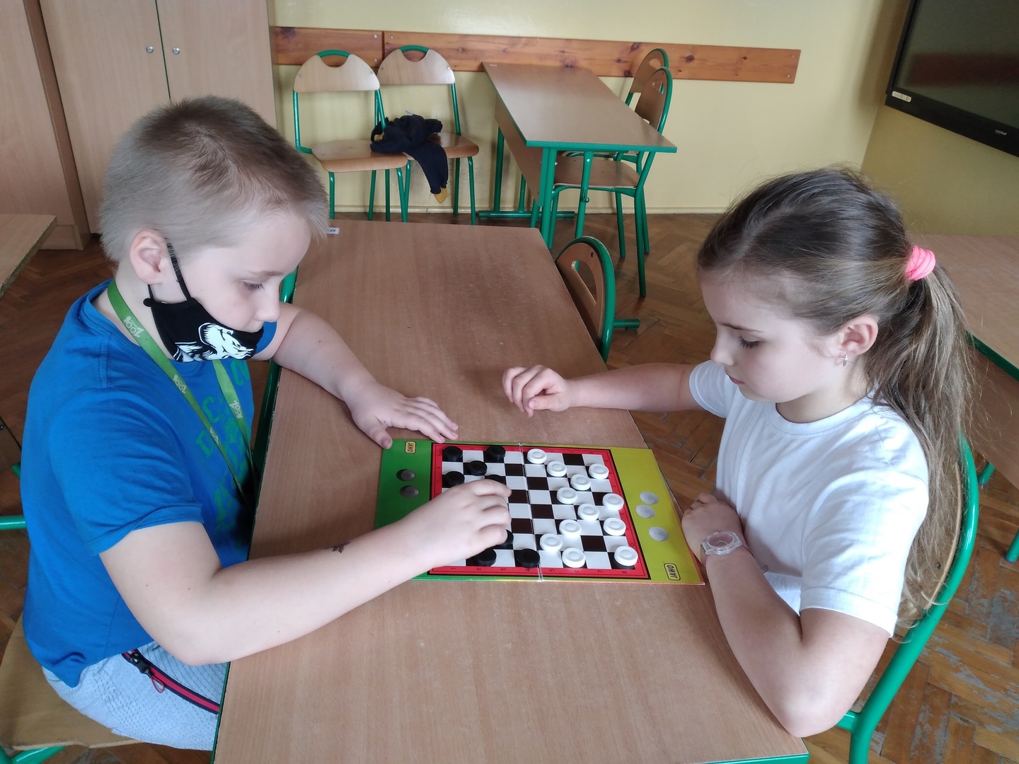 Zmagania o tytuł „Mistrza warcabów w klasach I -III” rozpoczęły się na początku marca. W każdej klasie odbyły się eliminacje klasowe, które wyłoniły uczniów do kolejnego etapu. Wszyscy uczniowie z klas I –III po wstępnych eliminacjach klasowych zmierzyli się podczas turnieju szkolnego, który odbył się 19 marca br. Najlepsi okazali się uczniowie: Alicja K. z kl. II, Nikodem Dz. z kl. III oraz Filip M. z kl. II. Uczniowie zaprezentowali wysoki poziom gry, w związku z tym po przerwie na zdalne nauczanie przeprowadzona zostanie dogrywka.