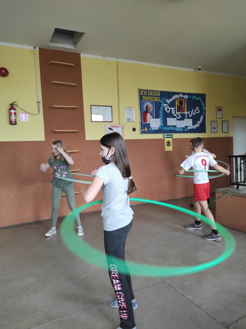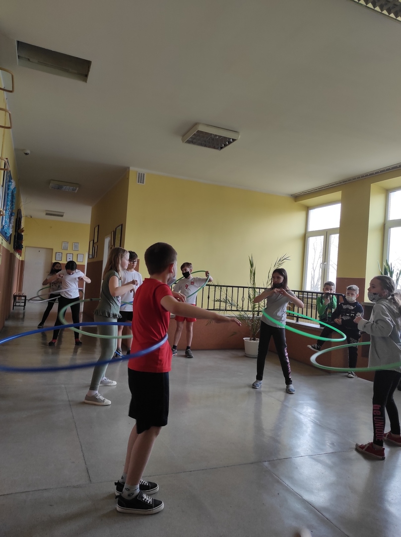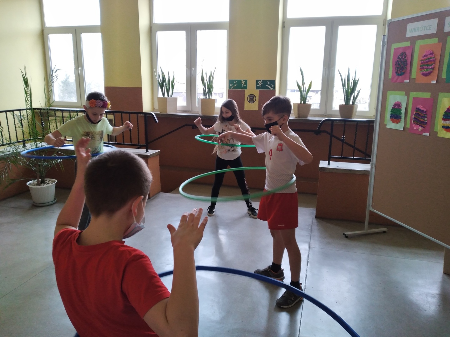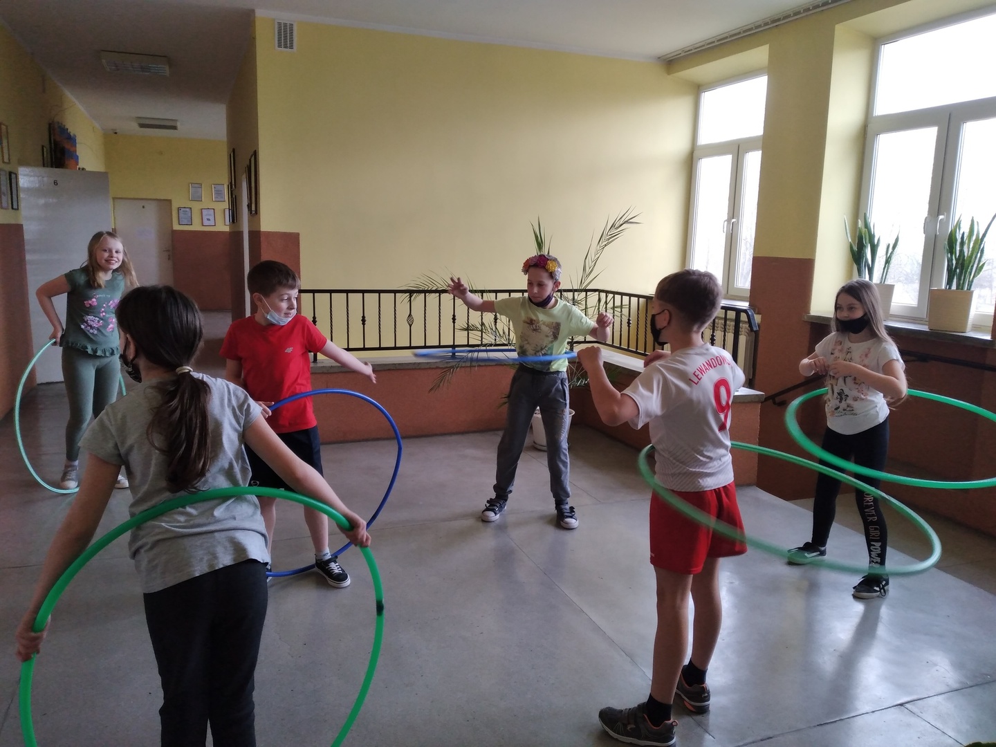 Następnie odbył się konkurs plastyczny nt. „Zwiastunów wiosny”. W tej konkurencji uczniowie również okazali się kreatywni, wykonując ciekawe prace. Na zakończenie odbył się turniej sportowy – hula – hop. W tej konkurencji najwyższy wynik osiągnęły uczennice z klasy III: Katarzyna R., Patrycja S. i Faustyna M.
