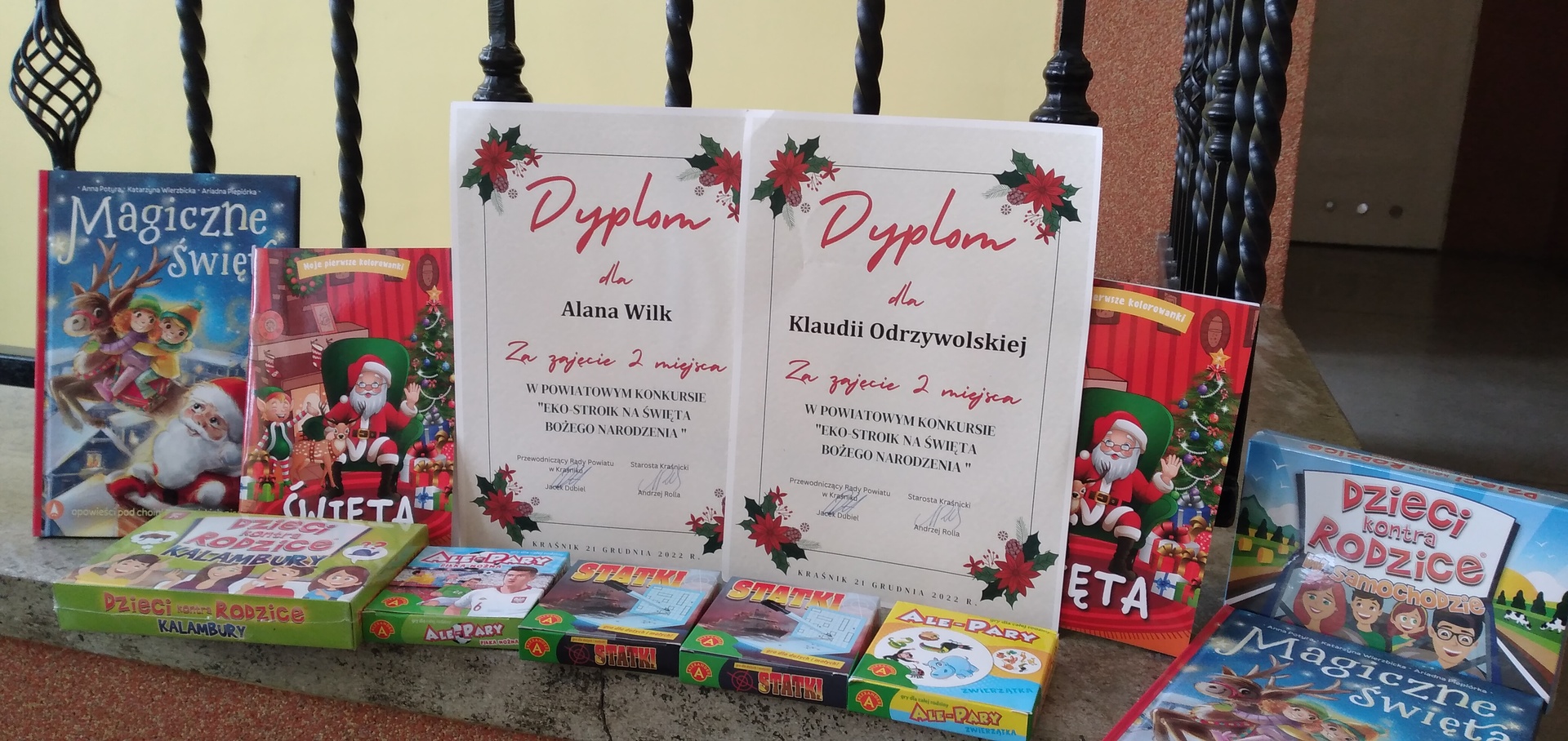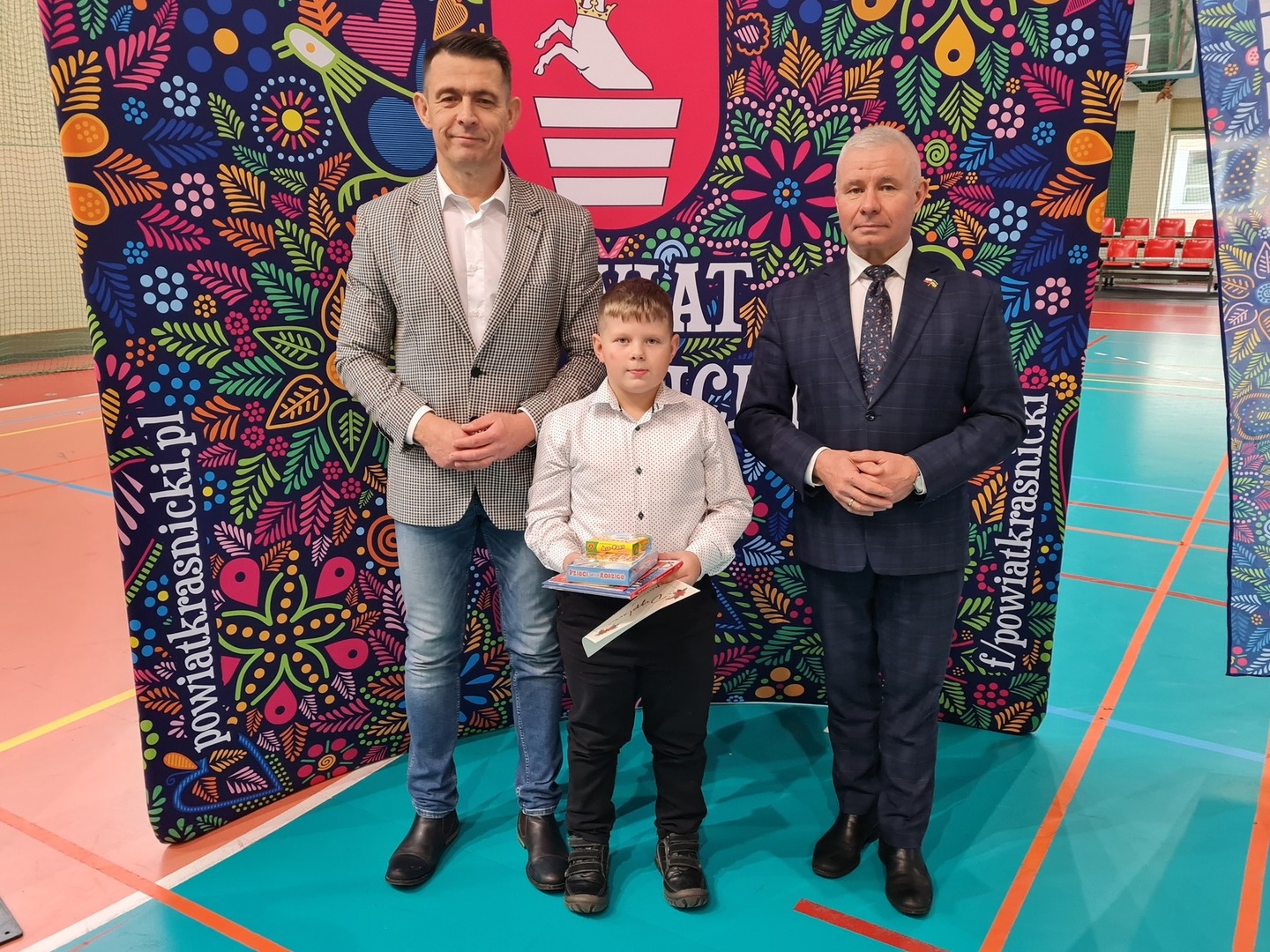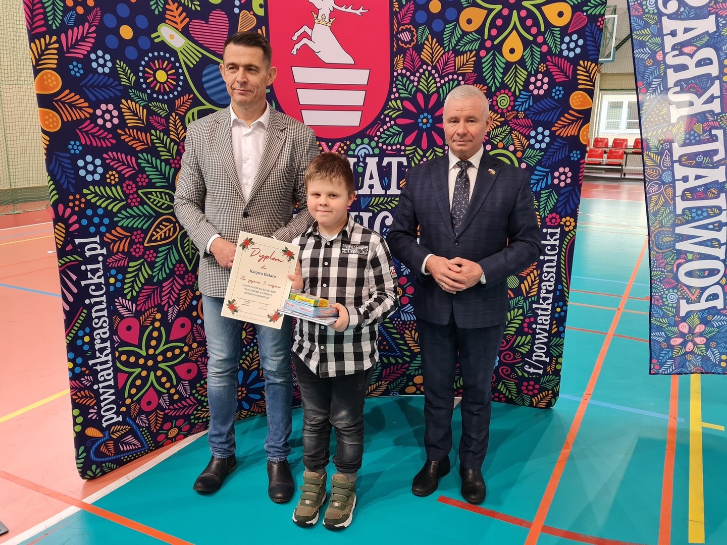 Wszyscy zwycięzcy otrzymali z rąk Starosty Kraśnickiego p. Andrzeja Rolli i Przewodniczącego Rady Powiatu w Kraśniku p. Jacka Dubiela pamiątkowe dyplomy oraz liczne gry rodzinne oraz książki. Wszystkim laureatom gratulujemy !!!