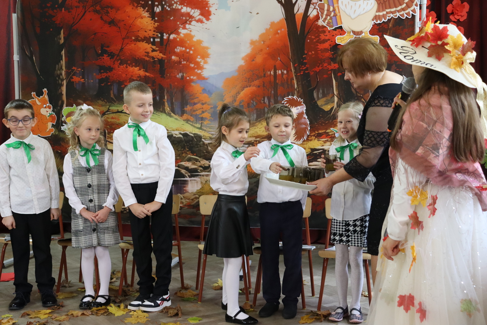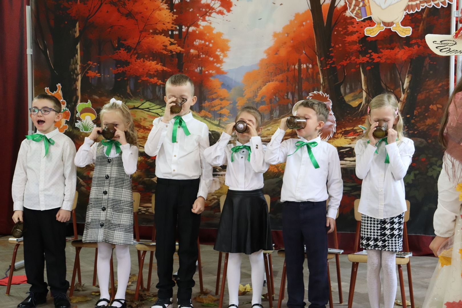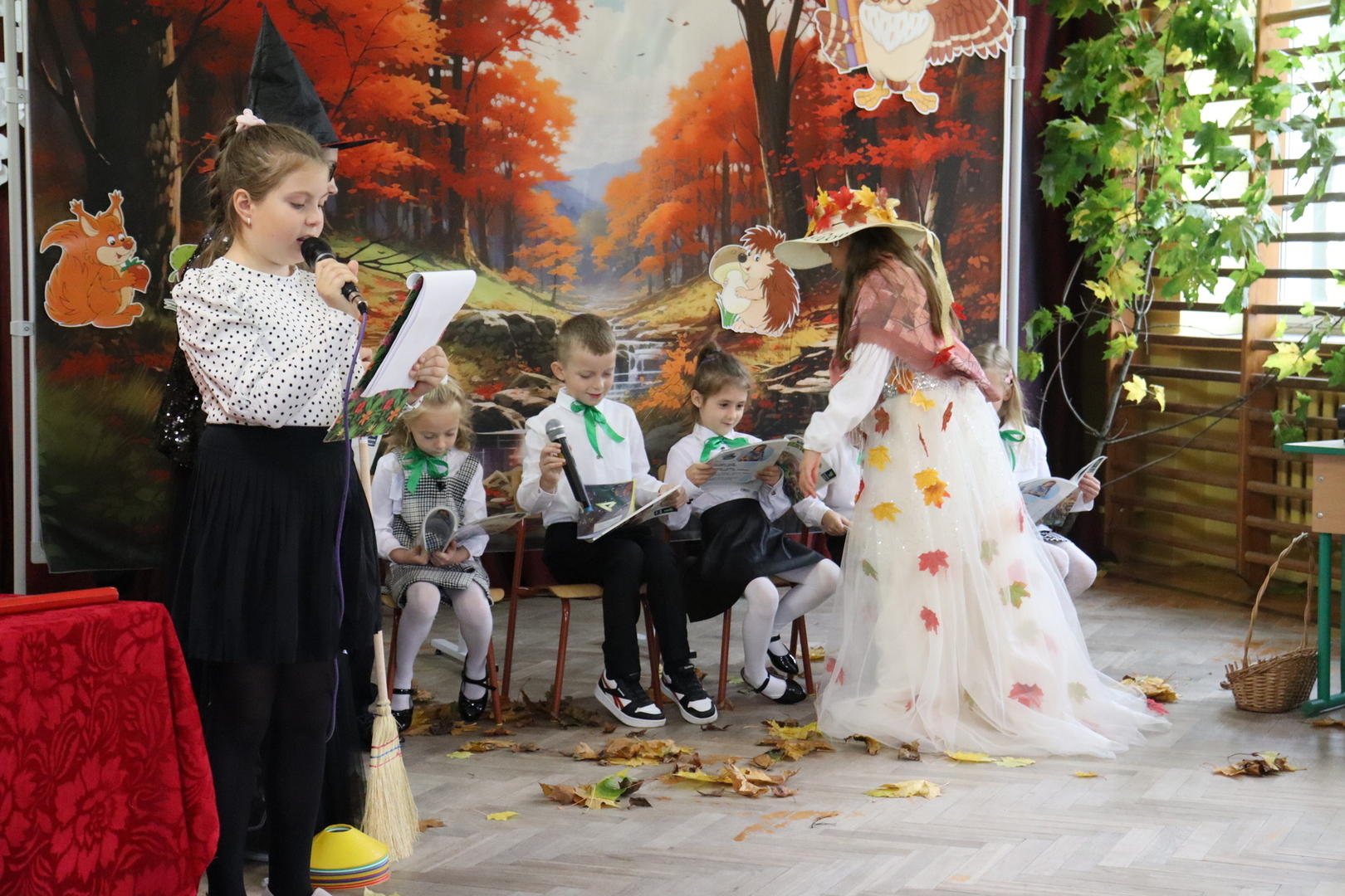 Na początku nasze dzieci zaprezentowały swoje umiejętności w ”SZKOLE PANI JESIENI”.
