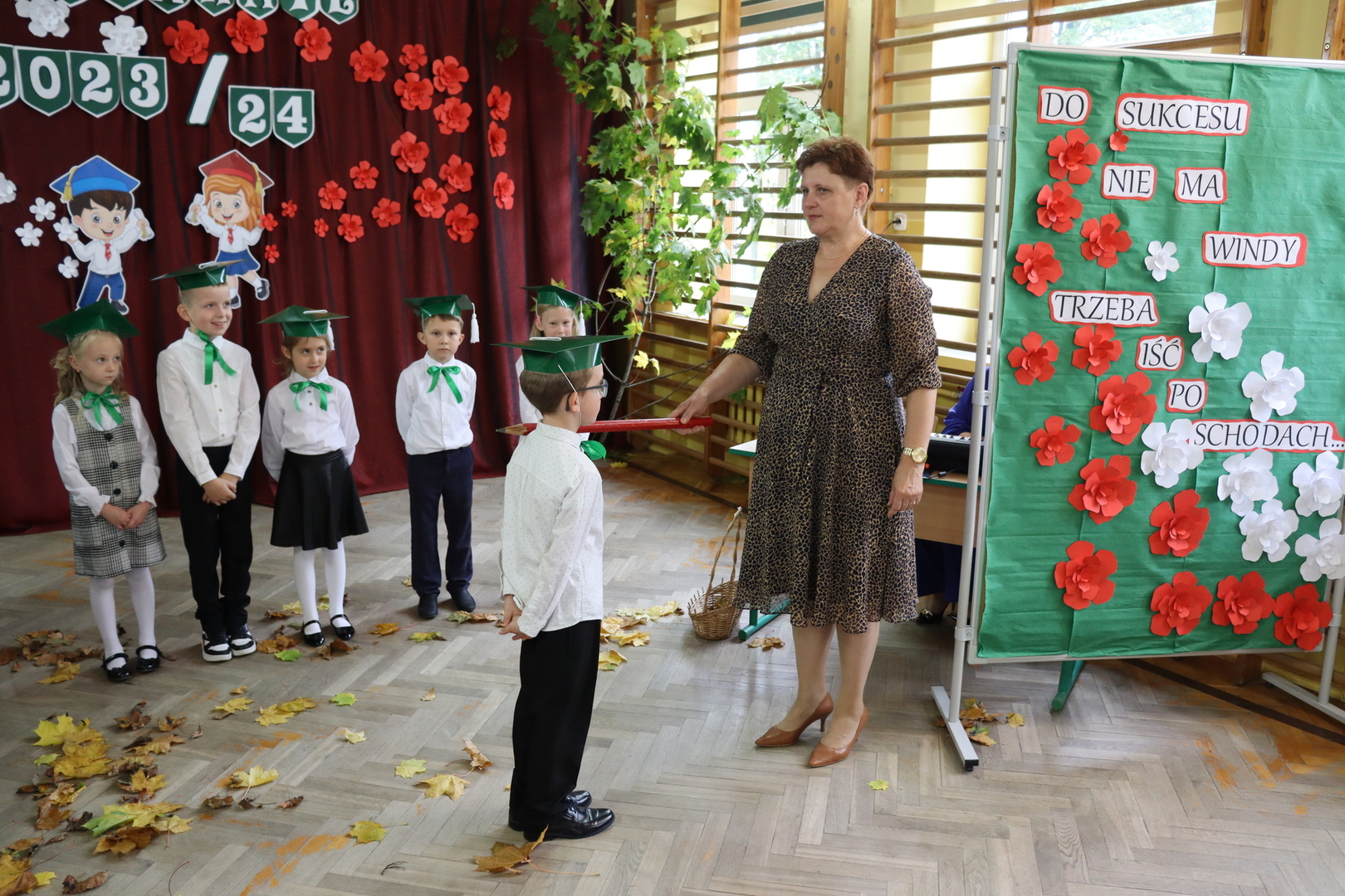 20 października 2023 r. w naszej szkole odbyła się uroczysta ceremonia, podczas której pierwszoklasiści stali się pełnoprawnymi uczniami. Cała społeczność szkolna wraz z rodzicami zgromadziła się, by uroczyście przyjąć do grona uczniów naszych najmłodszych kolegów i koleżanki.