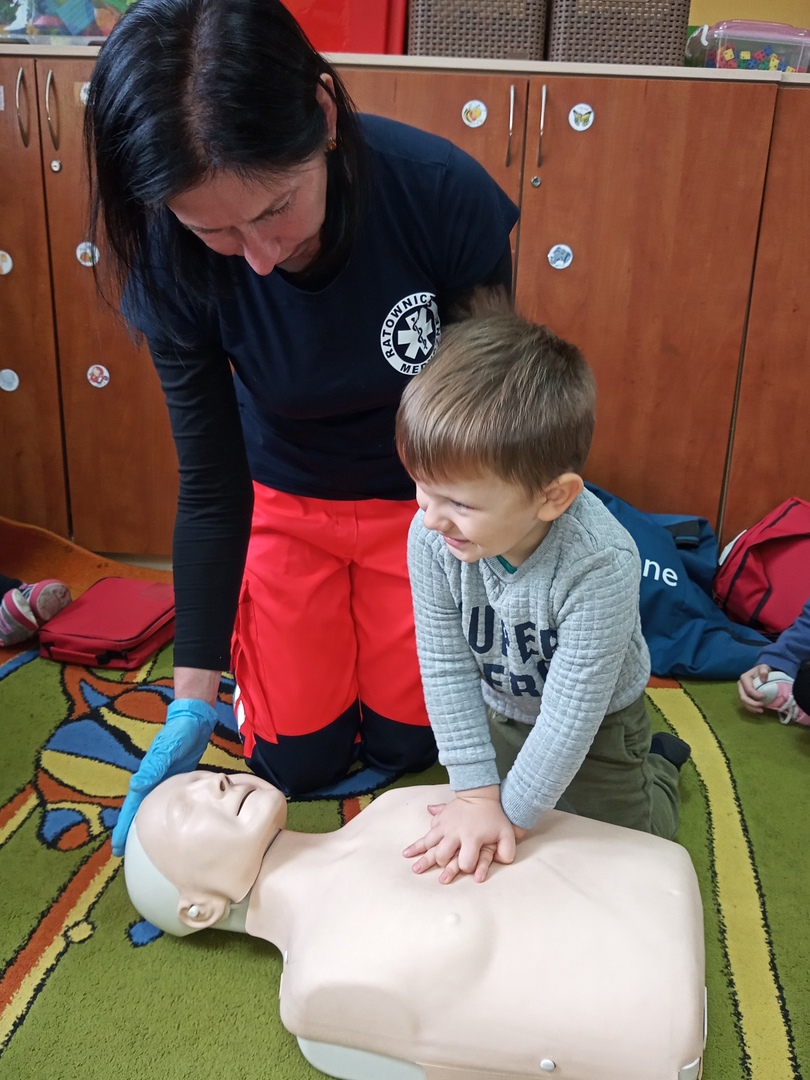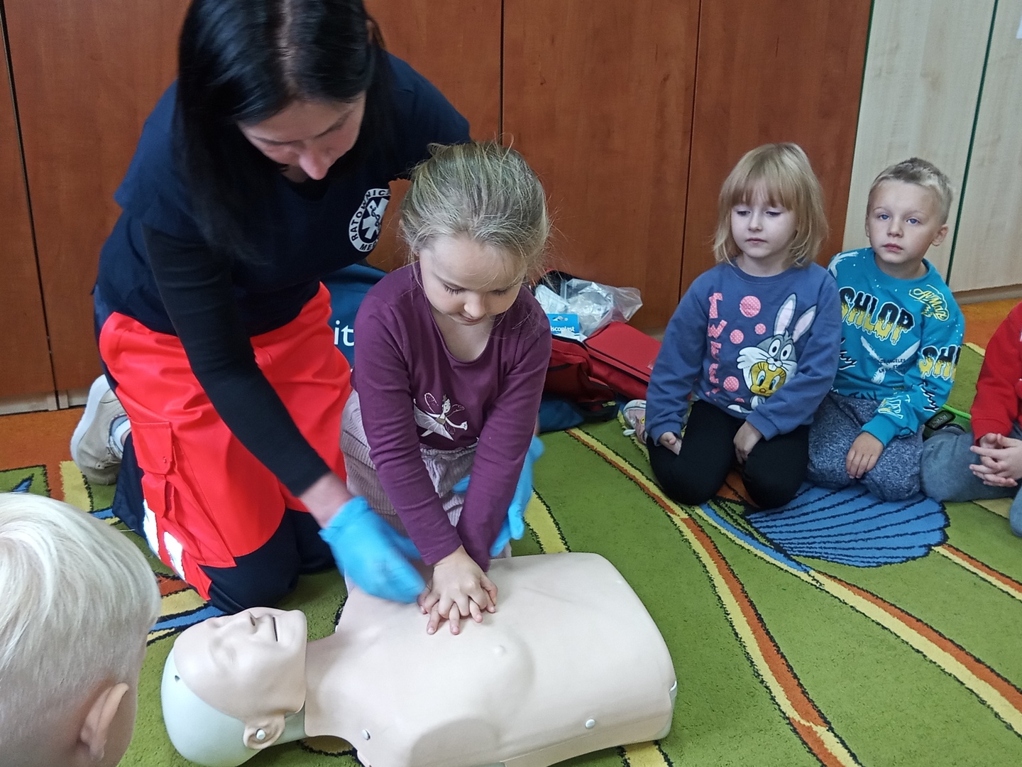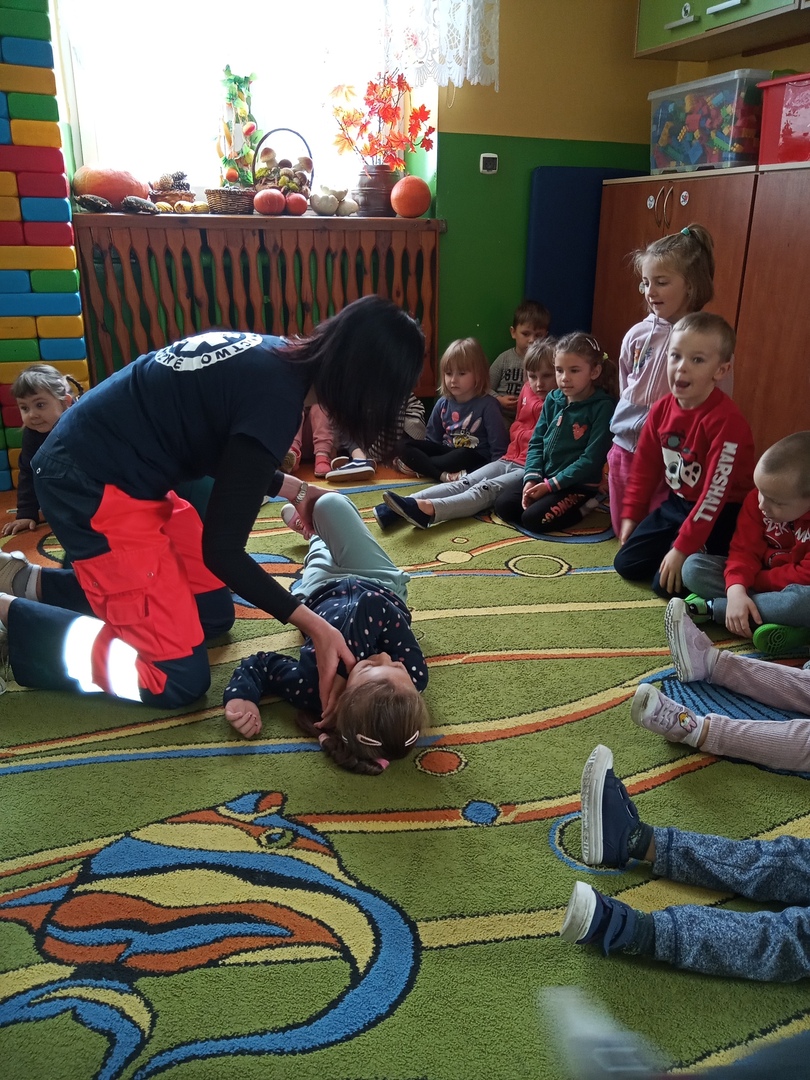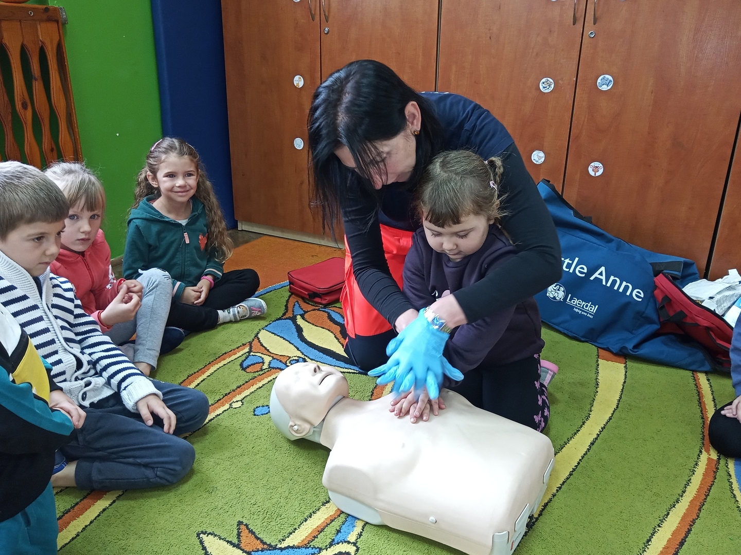 Dnia 17 października br. gościliśmy w naszym przedszkolu panią Monikę Koguc - wykwalifikowanego Ratownika Medycznego. Głównym celem wizyty było przekazanie dzieciom praktycznej wiedzy z zakresu udzielania pierwszej pomocy przedmedycznej oraz prawidłowego zachowania się w czasie wypadku i sytuacjach zagrożenia zdrowia i życia.