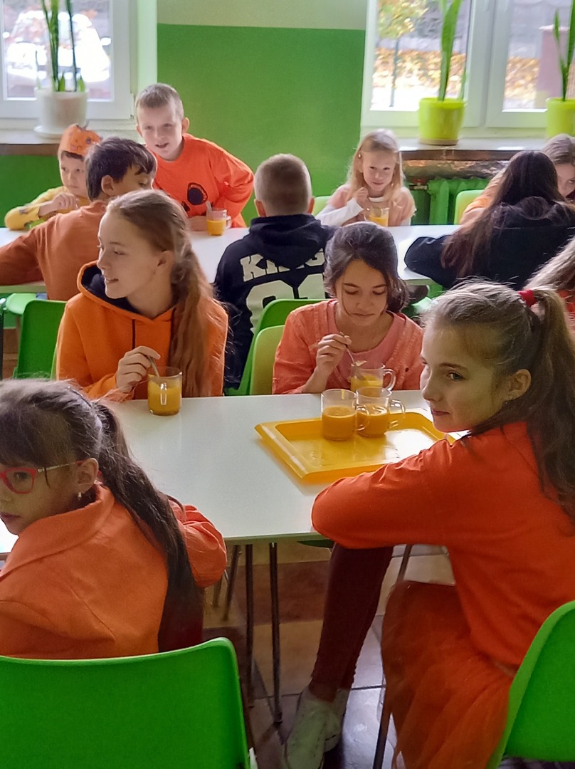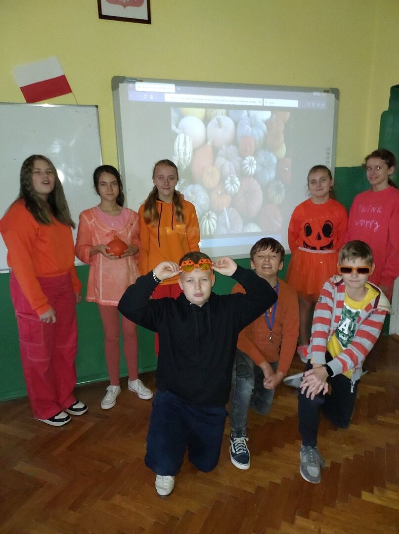 Na zajęciach uczniowie poznali wartości odżywcze dyni i walory zdrowotne pestek z dyni oraz rozwiązywali różne zadania tematycznie związane z tym świętem.