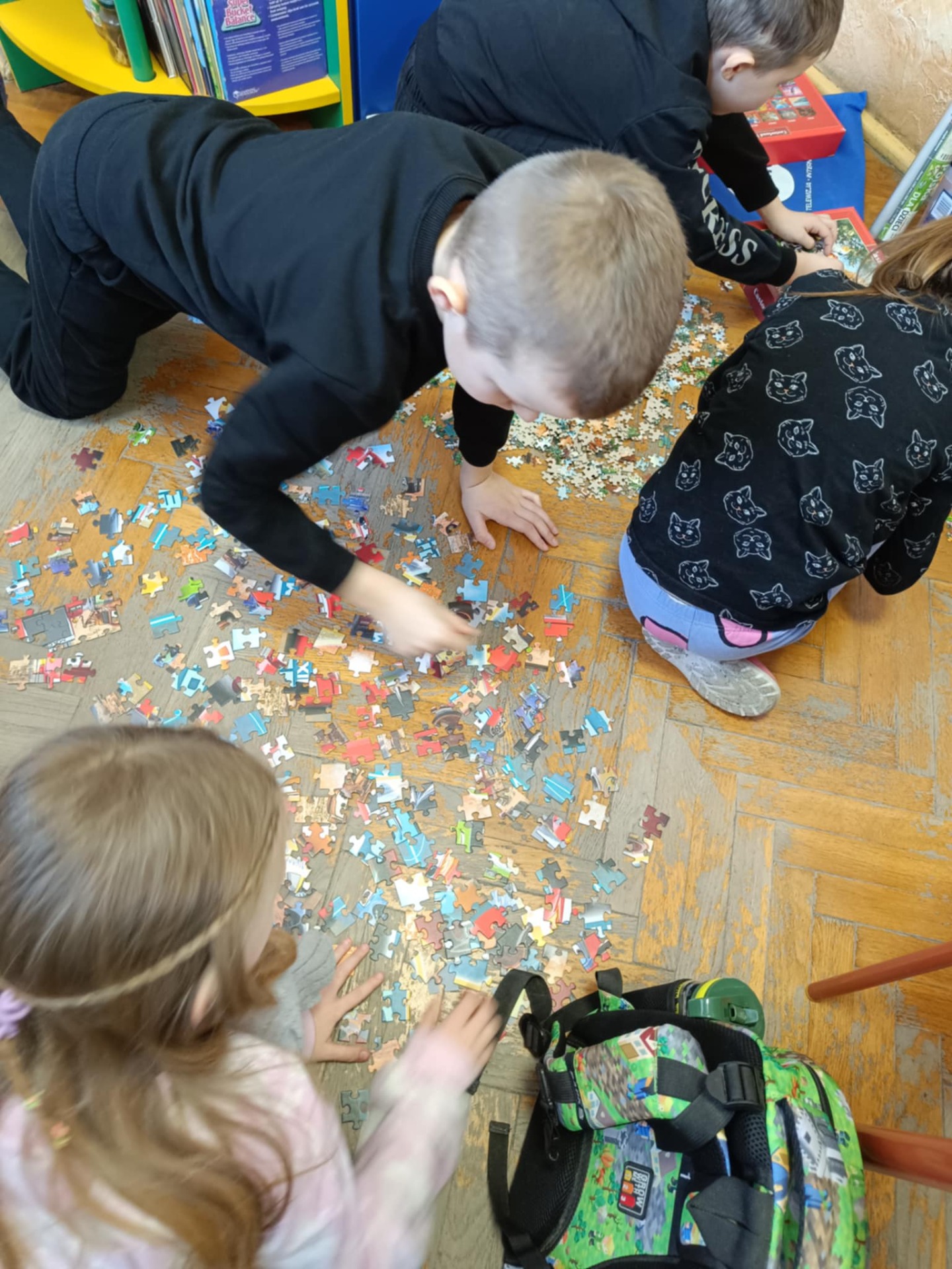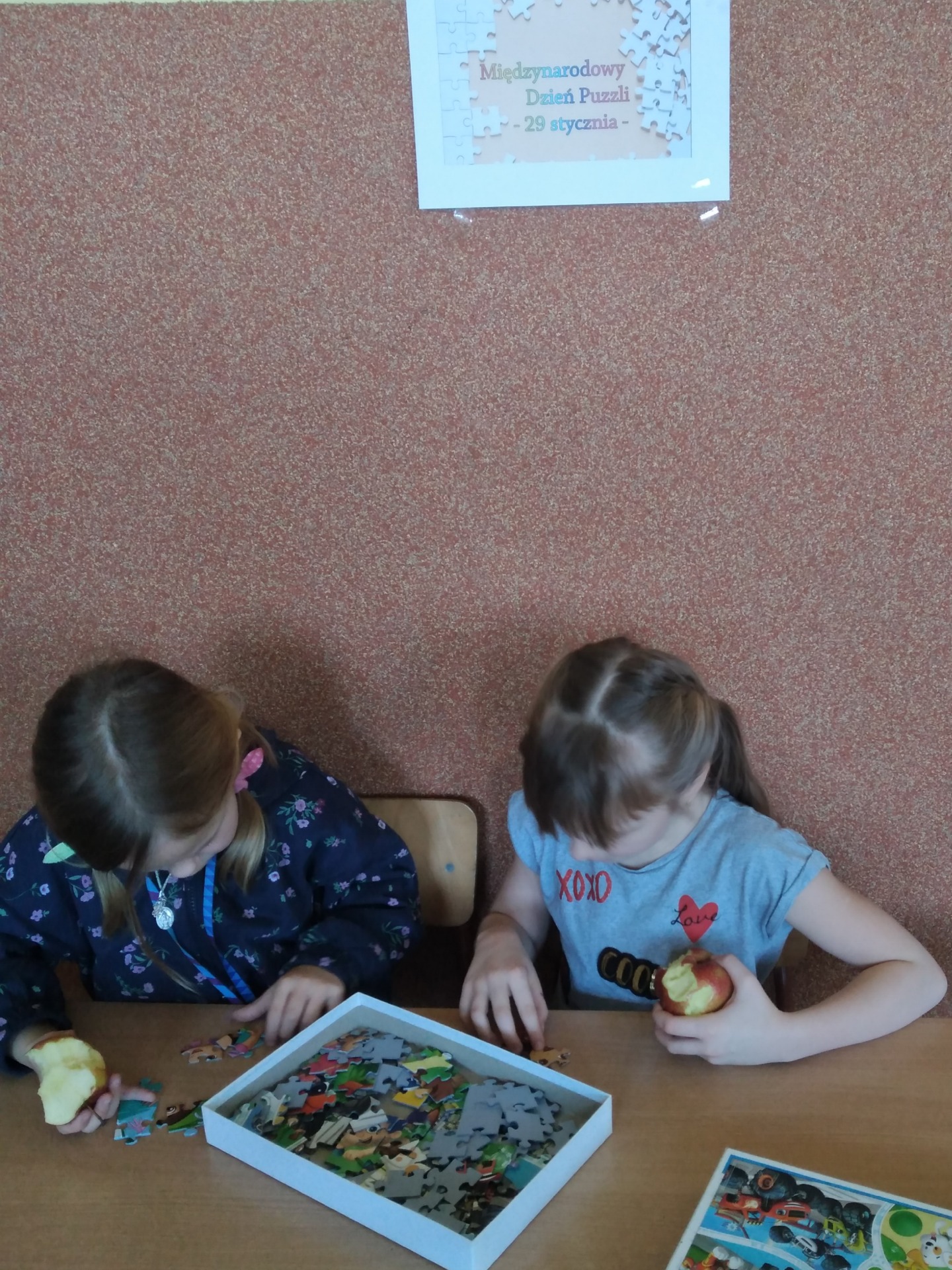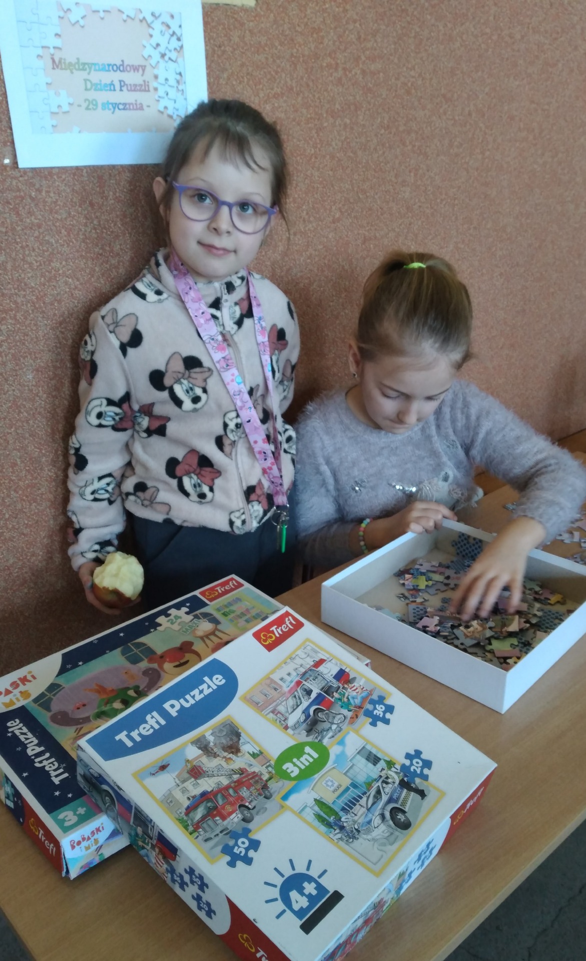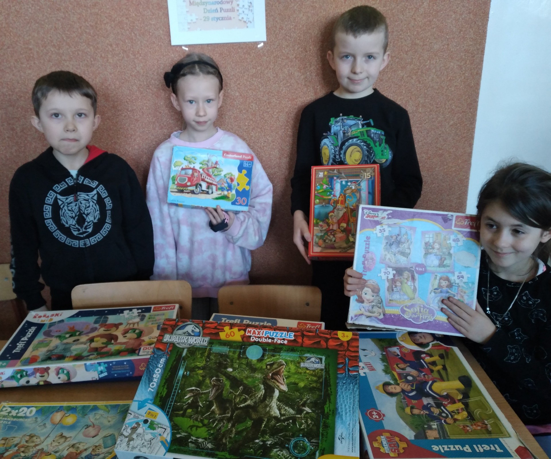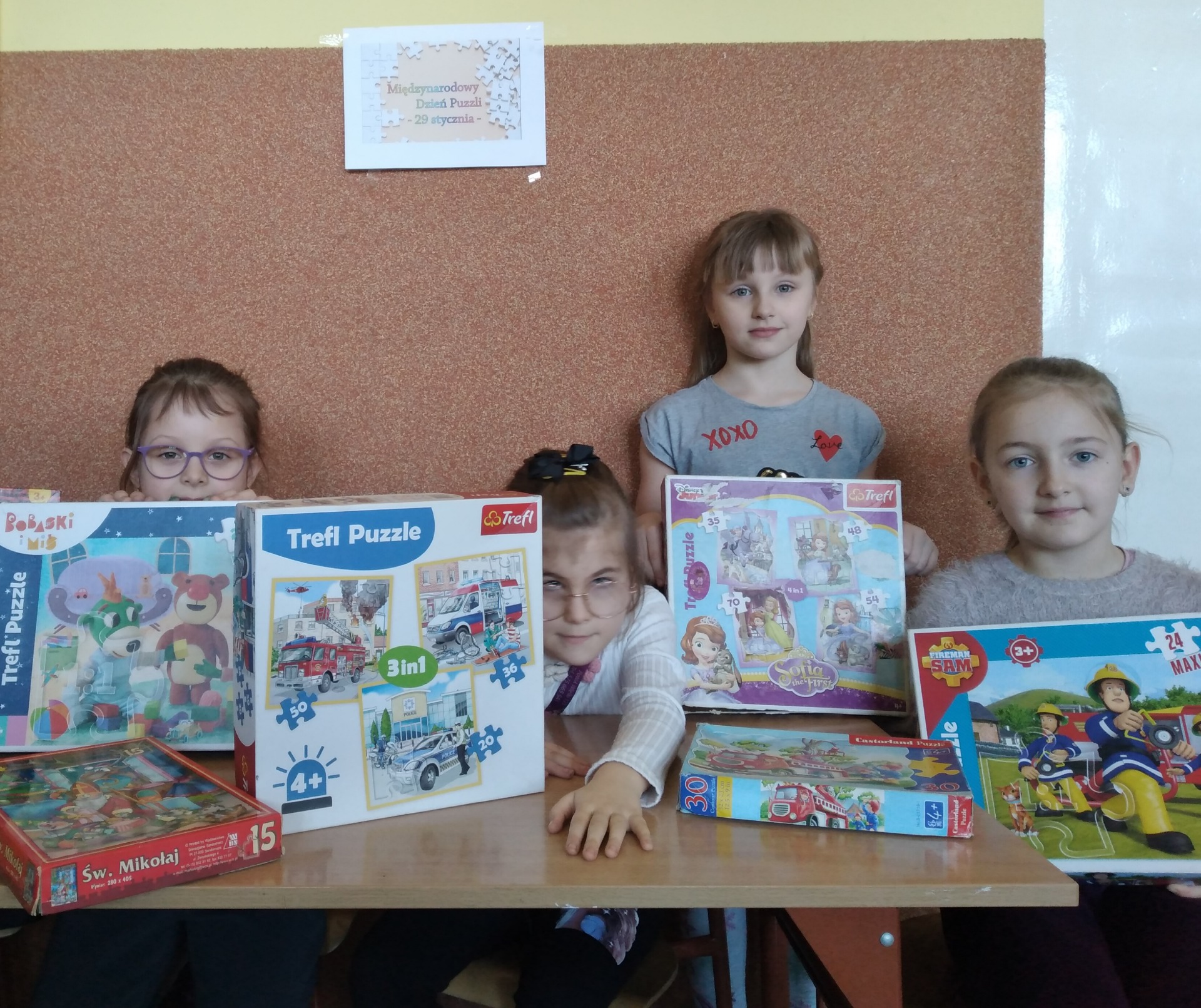 30 stycznia zorganizowano Mi臋dzynarodowy Dzie艅 Puzzli. Uczniowie klas I – II indywidualnie lub grupowo z ochot膮 uk艂adali ciekawe obrazki. Dzi臋ki przeprowadzonej akcji uczniowie uczyli si臋 wspó艂pracy w zespole, 膰wiczyli koncentracj臋 uwagi i spostrzegawczo艣膰. By艂 to wspania艂y sposób na rozwijanie sprawno艣ci manualnej i koordynacji ruchowej, wyobra藕ni oraz kreatywno艣ci.