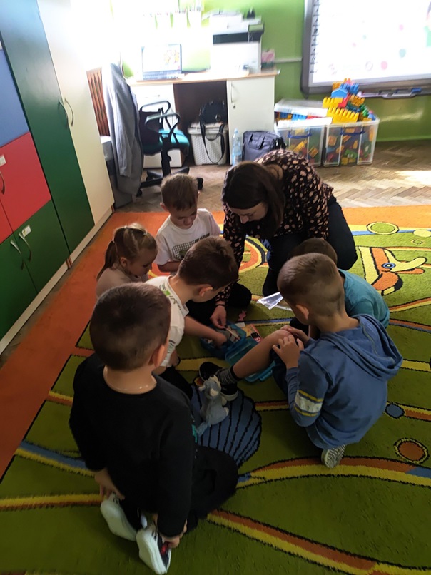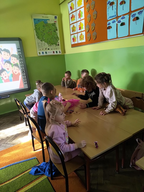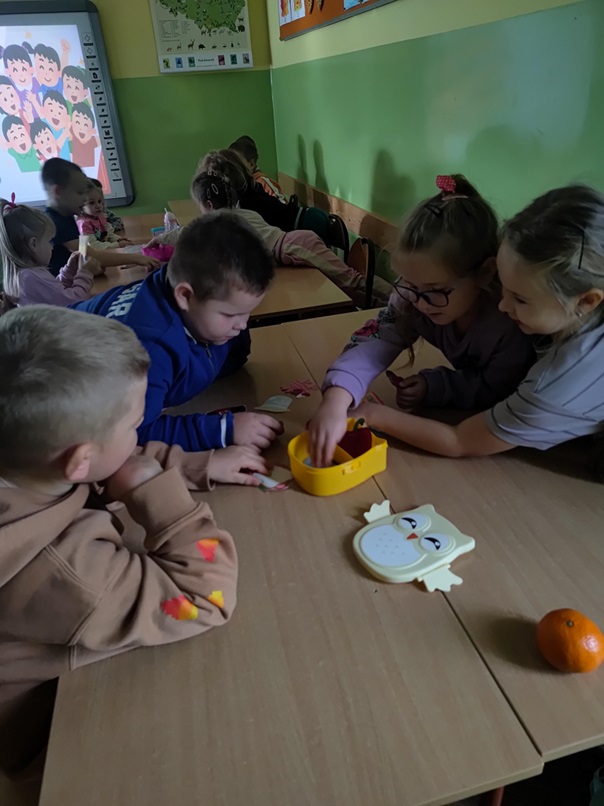 Najciekawszym elementem zajęć była część praktyczna. Przedszkolaki, podzielone na grupy, z zapałem podjęły się wyzwania: samodzielnego skomponowania wzorowej śniadaniówki. Dzieci aktywnie dyskutowały i wybierały tylko te produkty, które zasłużyły na miano zdrowych, udowadniając tym samym, że doskonale przyswoiły przekazaną wiedzę.