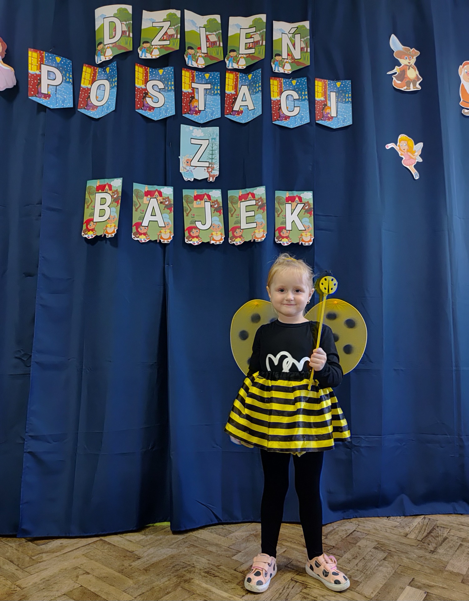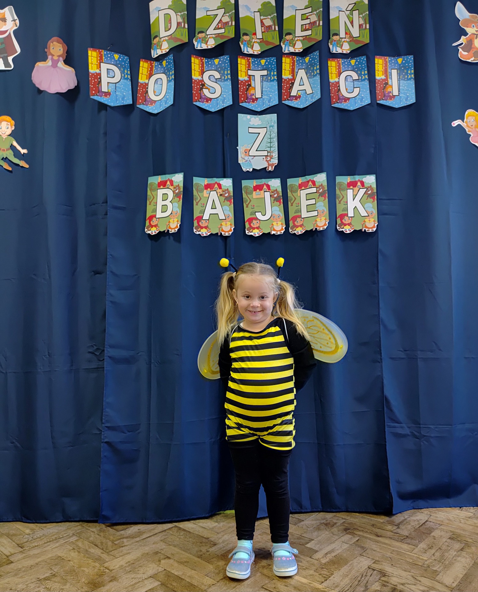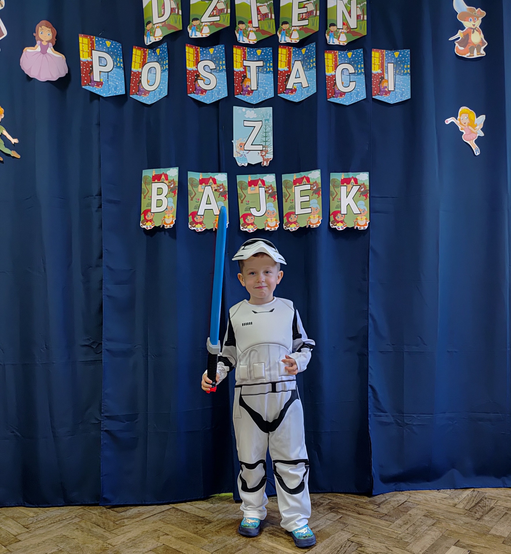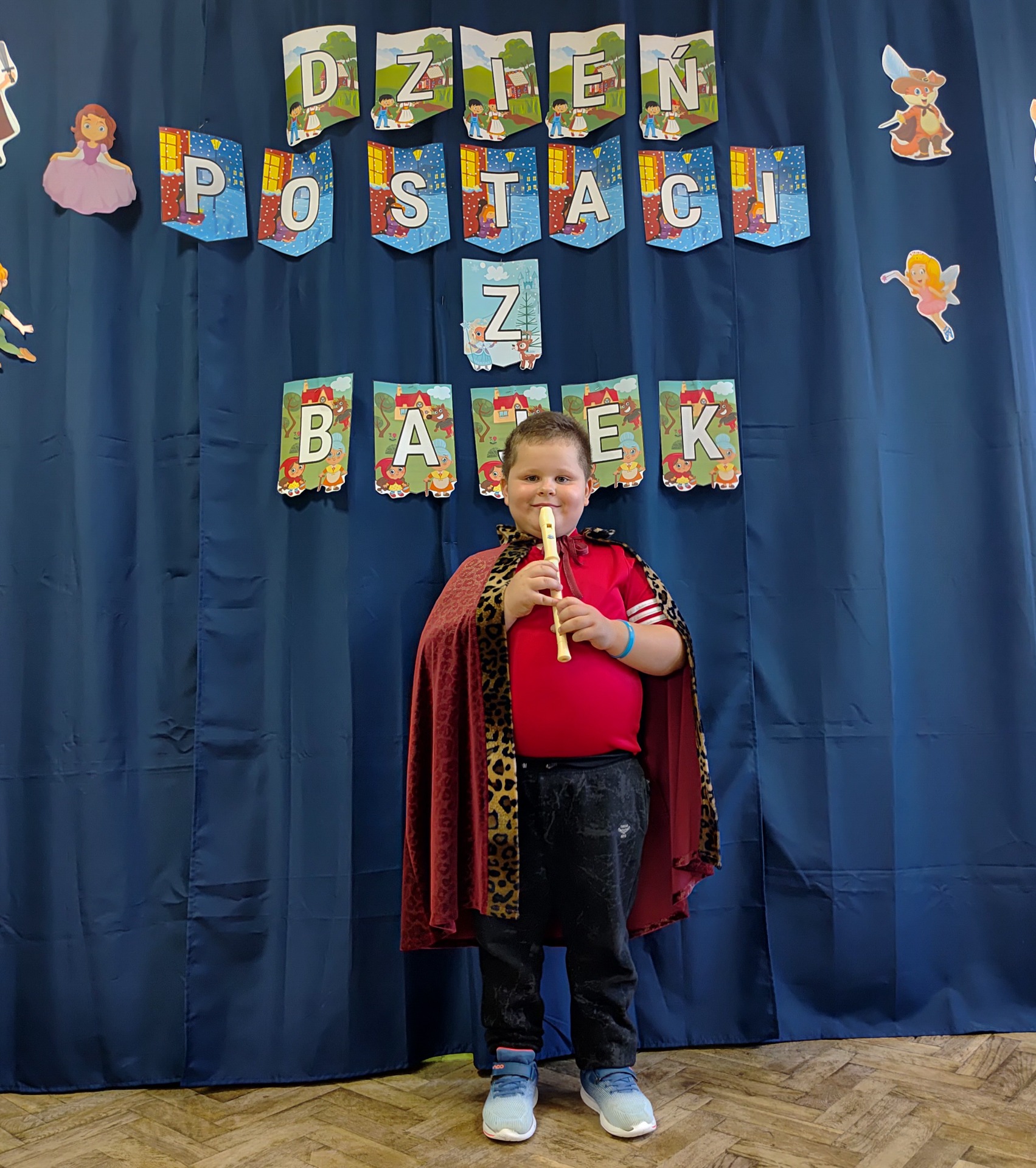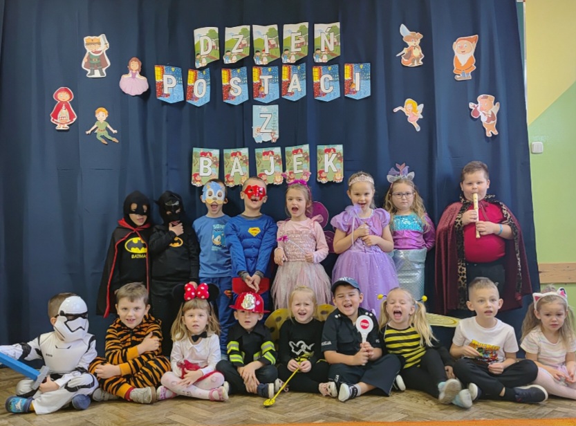 Piątego listopada nasze przedszkole zamieniło się w Magiczną Krainę, a wszystko za sprawą Dnia Postaci z Bajek. Dzieci przebrane w stroje fantastycznych bohaterów wyruszyły na wielką, bajkową misję. Ich zadaniem było odnalezienie i złożenie trzech fragmentów Magicznego Klucza, który otwierał kufer z najważniejszą recepturą na szczęście. Aby zdobyć poszczególne części, dzieci musiały wykazać się zręcznością i wiedzą.Przedszkolaki niczym Czerwony Kapturek pokonywały zaczarowany las, przechodząc przez ścieżki i przeskakując przez rzekę. Sprawność i odwaga przyniosły pierwszy fragment klucza. Następnie, w prawdziwym teście wiedzy, dzieci dopasowały rekwizyty i obrazki do znanych bajek. To zadanie pozwoliło na zdobycie drugiego fragmentu klucza. Ostatni fragment klucza wymagał od przedszkolaków chwili wyciszenia, każde dziecko na chwilę spróbowało zasnąć jak Śpiąca Królewna. Po złożeniu Magicznego Klucza nastąpił moment otwarcia kuferka. Ku zaskoczeniu, w środku nie było złota, lecz niezapomniany napis ,,przyjaźń". Przedszkolaki zgodziły się, że to właśnie przyjaźń jest receptą na szczęście. Wielką przygodę zakończyliśmy Bajkowym Balem, po którym dzieci wróciły z Bajkowej Krainy do rzeczywistości.