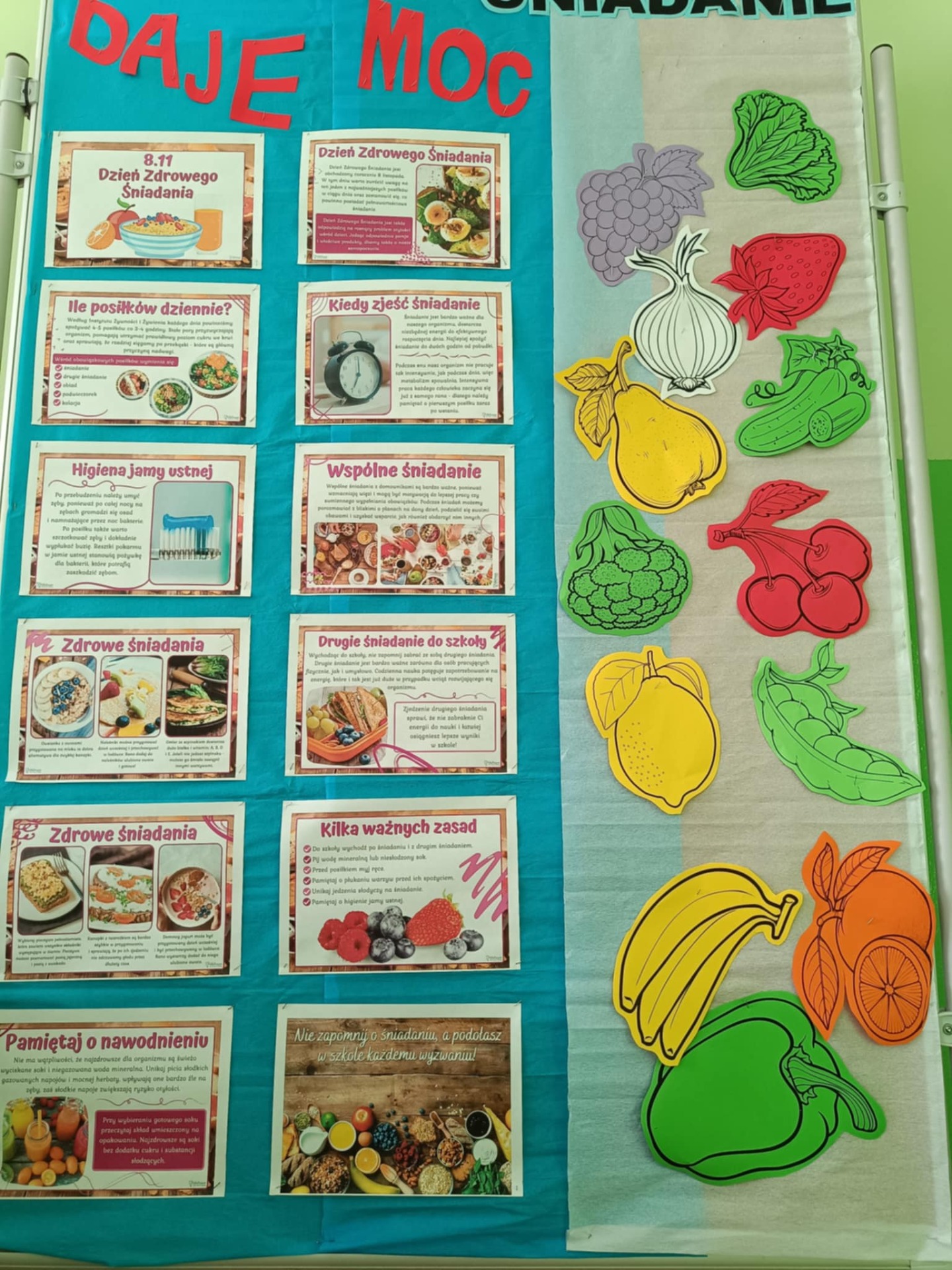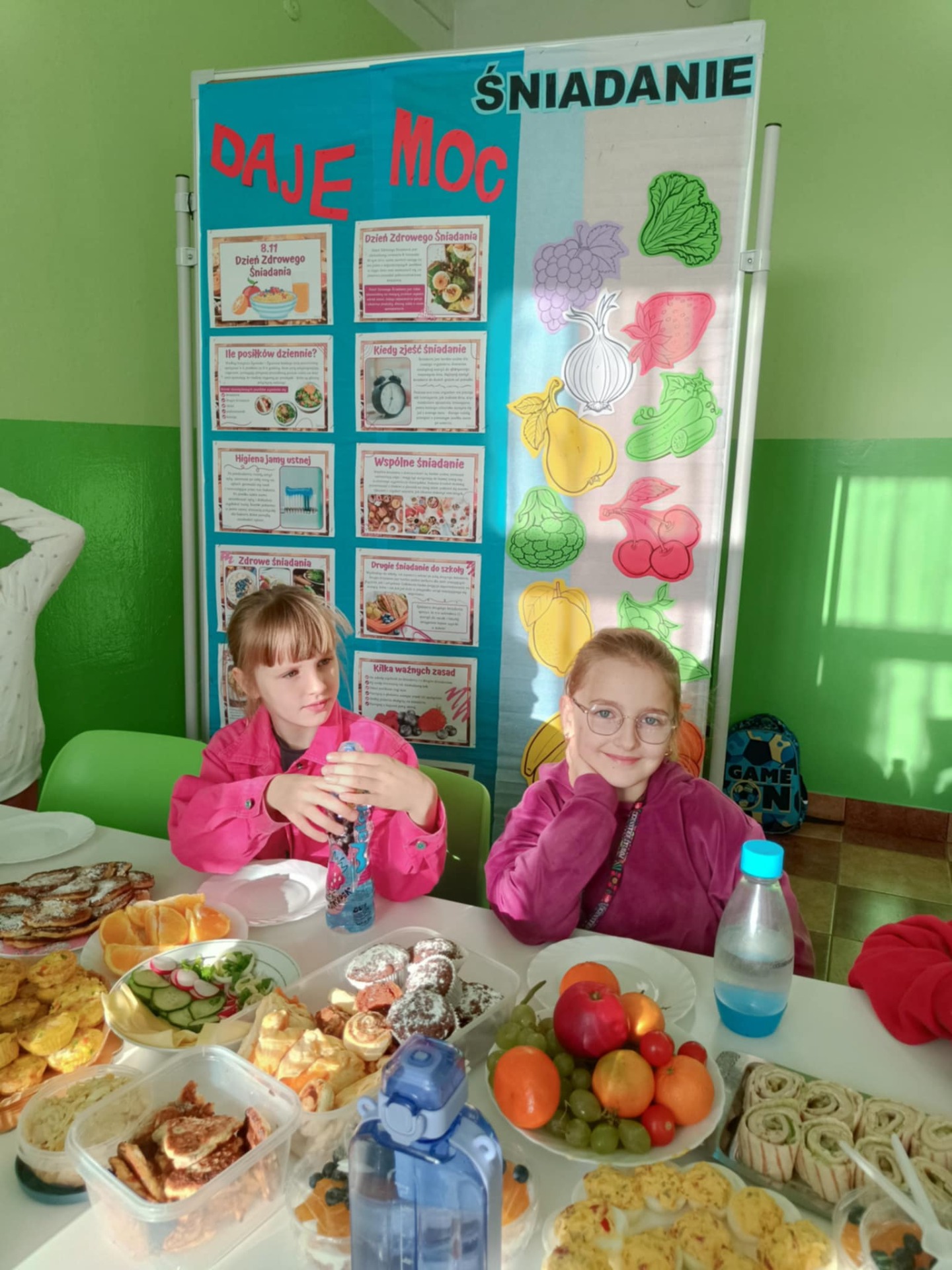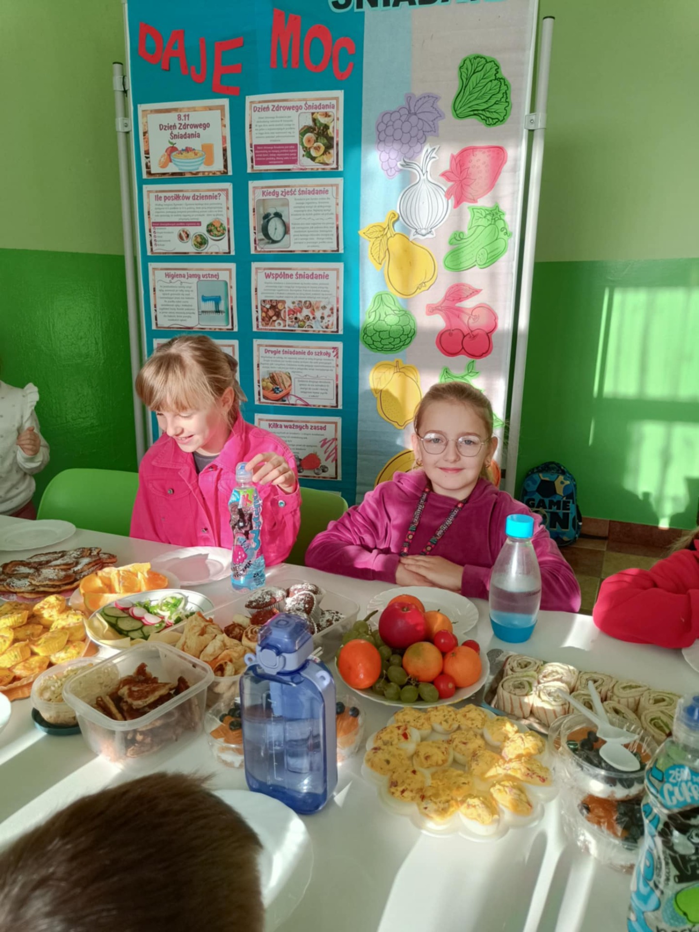 6 listopada uczniowie naszej szkoły, po raz kolejny, dołączyli do ogólnopolskiej akcji ,,Śniadanie daje moc”. Ideą programu jest promowanie zdrowego odżywianie się i podkreślenie roli śniadania jako najważniejszego posiłku w ciągu dnia. W tym dniu dzieci przygotowały z pomocą rodziców i przyniosły do szkoły pyszne, zdrowe i kolorowe śniadanko, które potem wspólnie zjadły. Na naszych stołach klas I-V zagościły kolorowe kanapeczki, koreczki, miód, musli, jogurty, sery, pasty, sałatki owocowe, soki i inne pyszne smakołyki. W trakcie wspólnego śniadania odbyła się również pogadanka na temat znaczenia i roli śniadania dla prawidłowego funkcjonowania naszego organizmu. Efekty tej akcji można było zauważyć na przerwach, bo nasze dzieci miały mnóstwo energii do wspólnej zabawy.