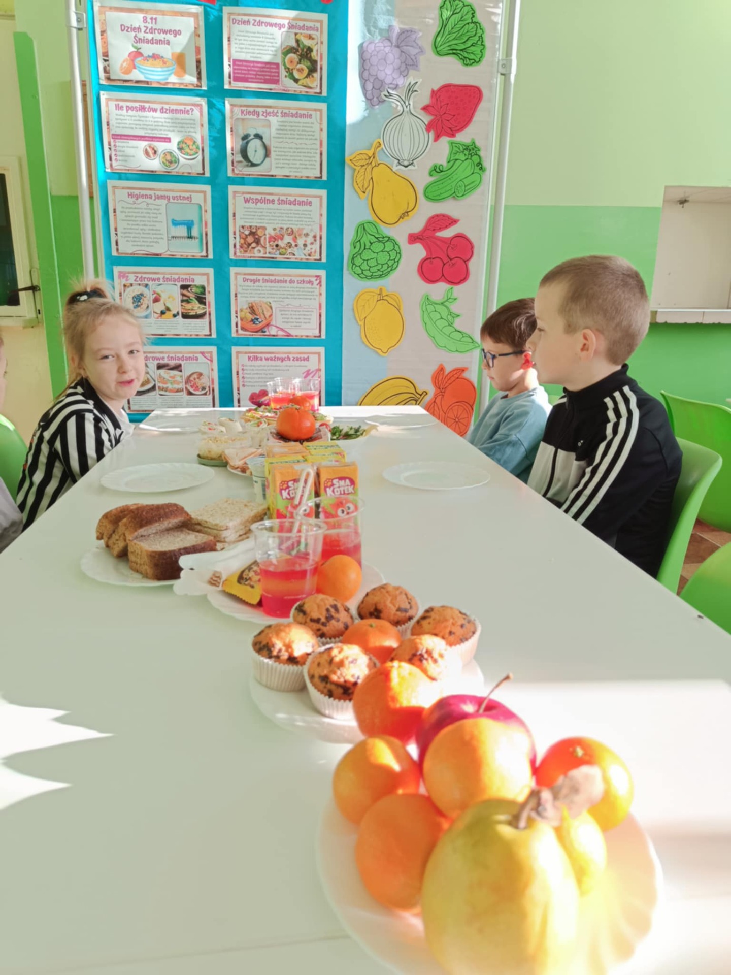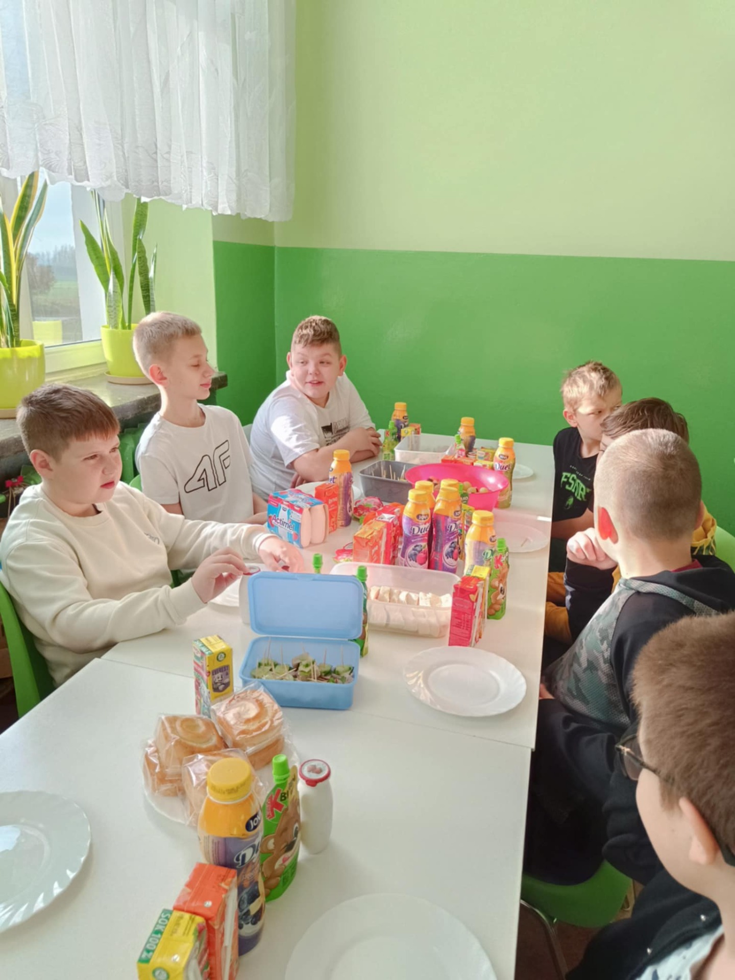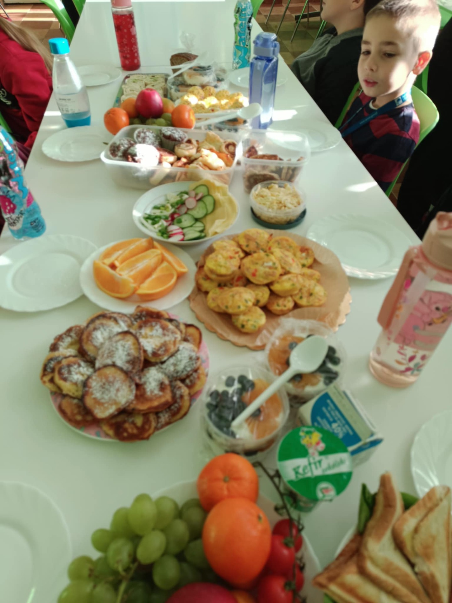 6 listopada uczniowie naszej szkoły, po raz kolejny, dołączyli do ogólnopolskiej akcji ,,Śniadanie daje moc”. Ideą programu jest promowanie zdrowego odżywianie się i podkreślenie roli śniadania jako najważniejszego posiłku w ciągu dnia. W tym dniu dzieci przygotowały z pomocą rodziców i przyniosły do szkoły pyszne, zdrowe i kolorowe śniadanko, które potem wspólnie zjadły. Na naszych stołach klas I-V zagościły kolorowe kanapeczki, koreczki, miód, musli, jogurty, sery, pasty, sałatki owocowe, soki i inne pyszne smakołyki. W trakcie wspólnego śniadania odbyła się również pogadanka na temat znaczenia i roli śniadania dla prawidłowego funkcjonowania naszego organizmu. Efekty tej akcji można było zauważyć na przerwach, bo nasze dzieci miały mnóstwo energii do wspólnej zabawy.