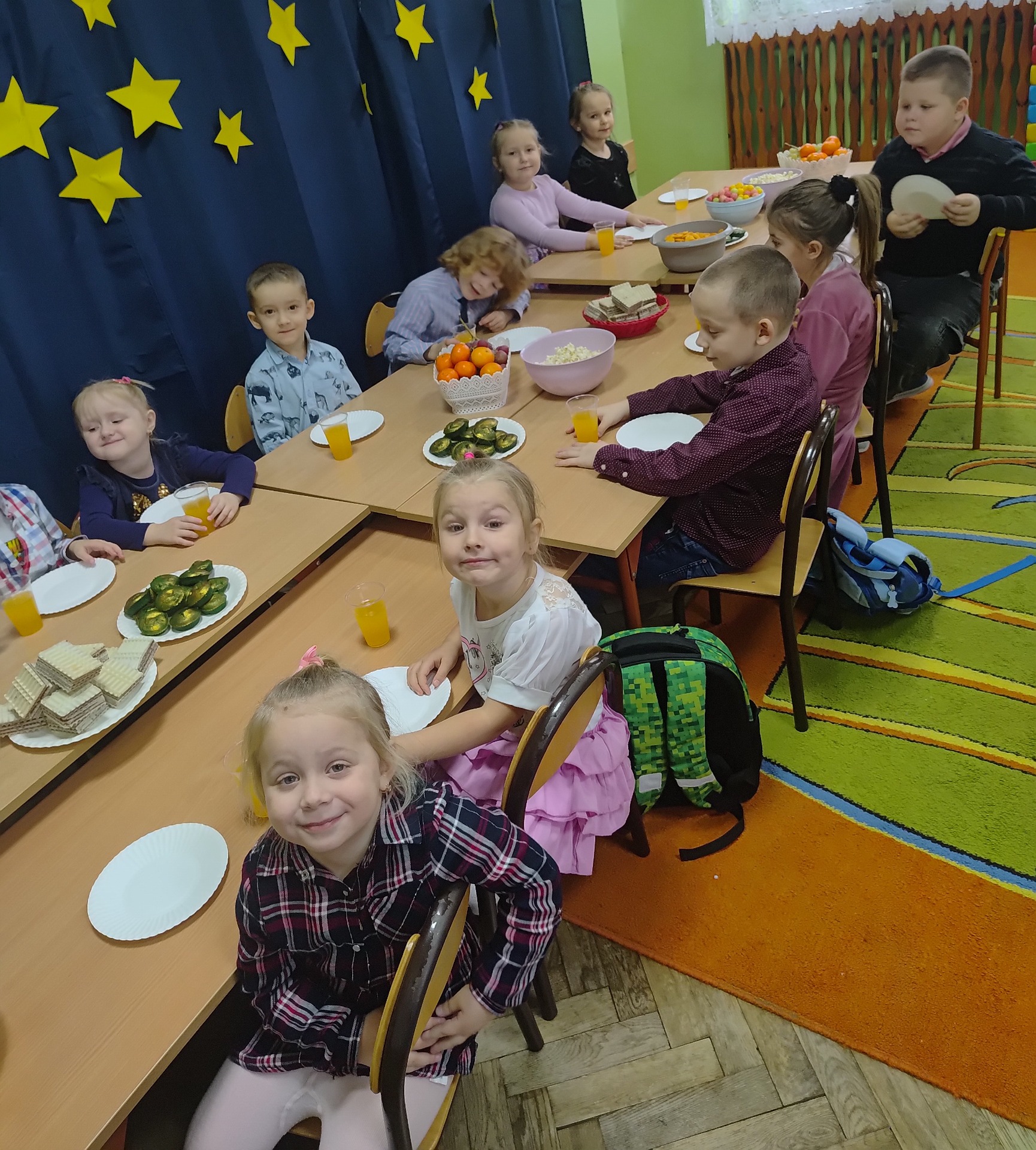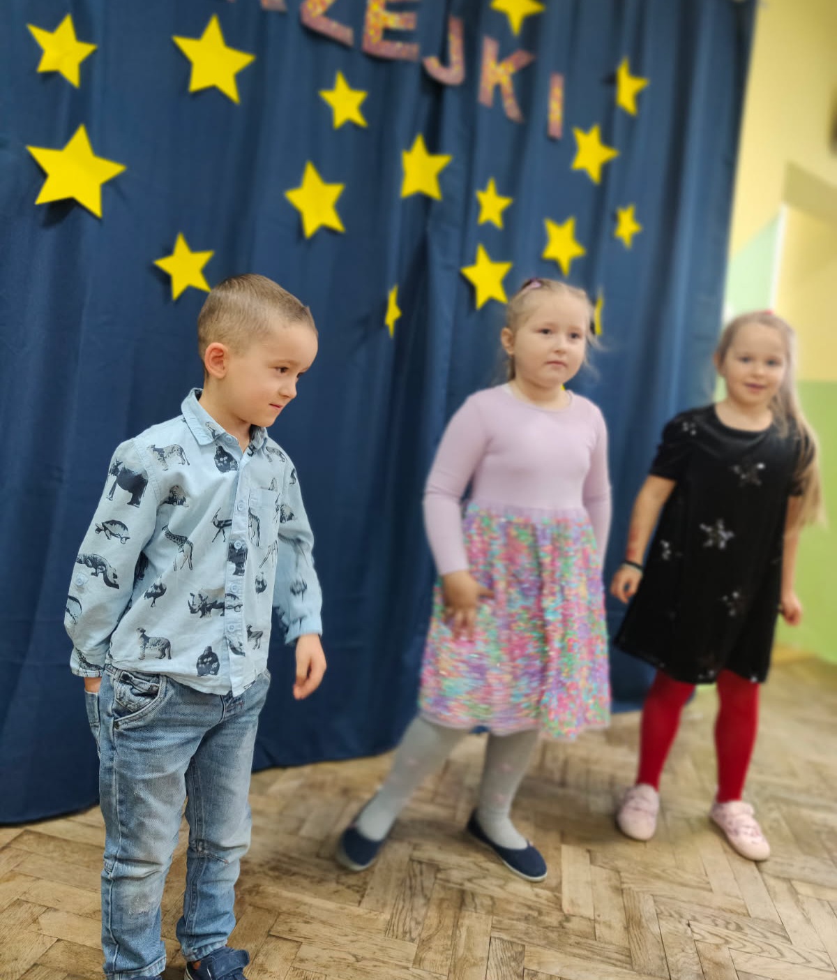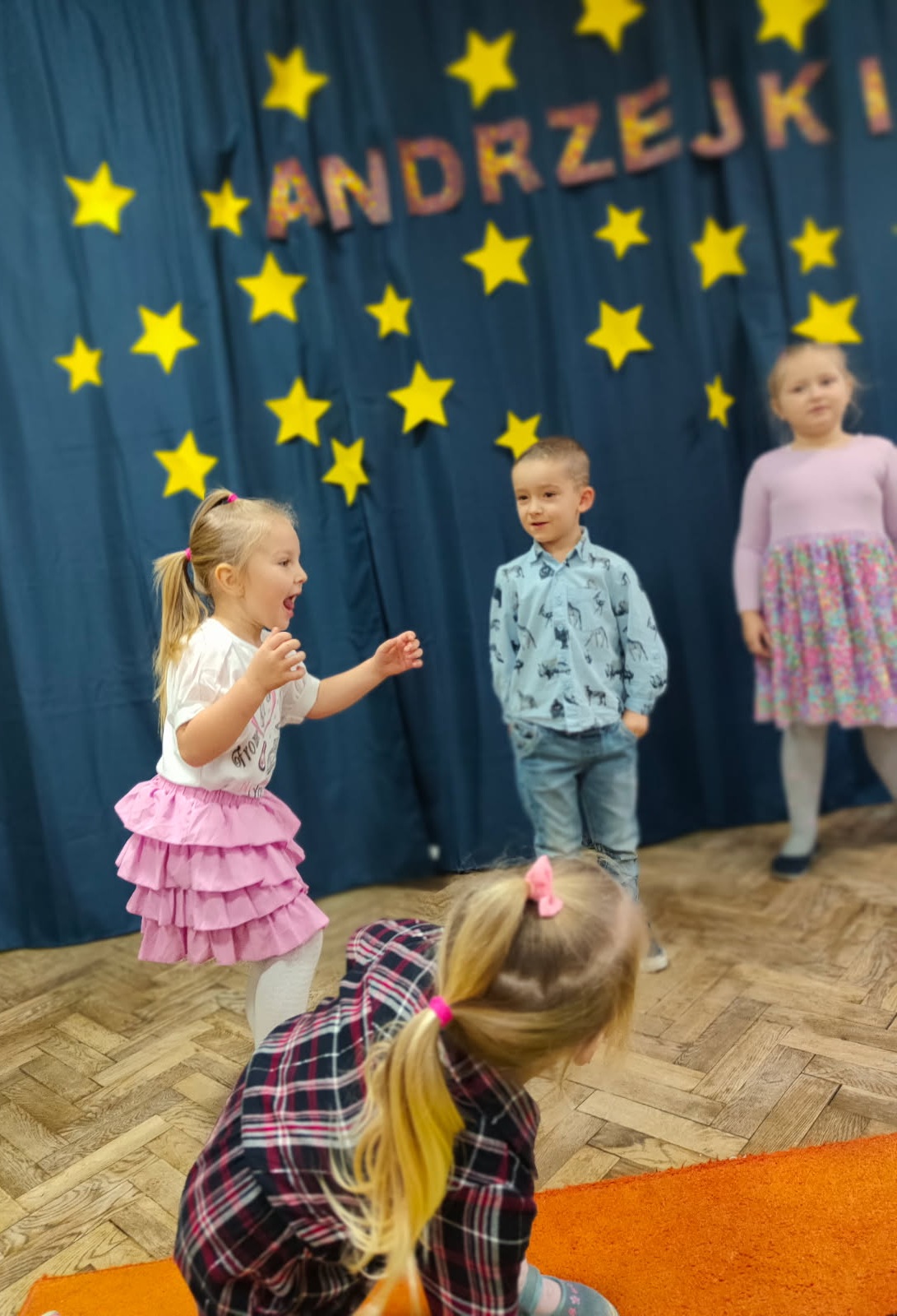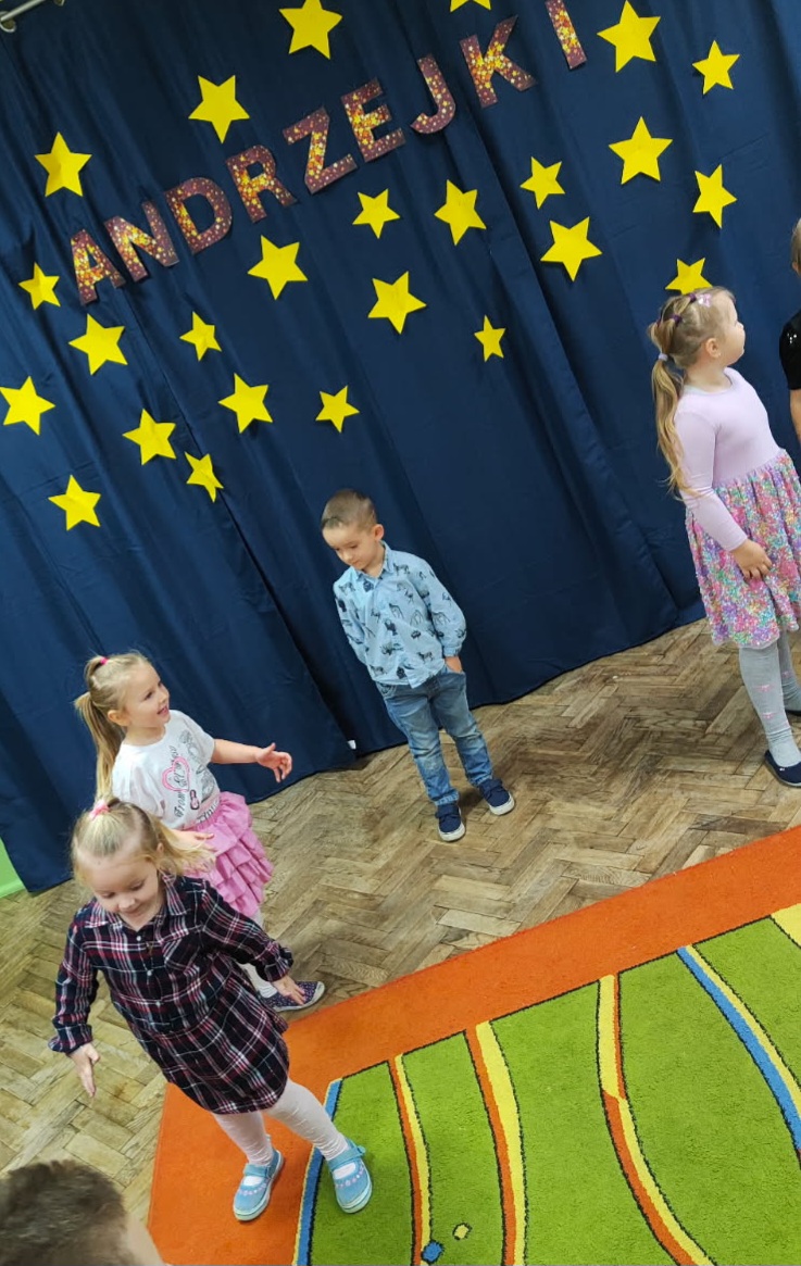 Dnia 27 listopada w naszym przedszkolu celebrowaliśmy Andrzejki. Wszystkie dzieci przyszły ubrane w odświętne stroje. Najważniejszym punktem dnia były andrzejkowe wróżby. Przedszkolaki z zaangażowaniem losowały karty przyszłości, odkrywając, kim zostaną, gdy dorosną. Dzieci odkryły także, jakie prezenty przyniesie im w tym roku Święty Mikołaj. Nie mogło zabraknąć wspólnych tańców, które rozgrzały atmosferę. Szczególną popularnością cieszyła się zabawa na gazecie. Ten taniec wymagał od przedszkolaków sprytu, ponieważ z każdą chwilą przestrzeń do tańca stawała się coraz mniejsza. Aby wystarczyło sił do dalszej zabawy, przedszkolaki posiliły się smacznymi przekąskami. Na zakończenie tej magicznej uczty, każde dziecko wykonało piękną pracę plastyczną – lśniącą gwiazdkę, która jest pamiątką tego wyjątkowego dnia. Następnie wszyscy zebrali się w kręgu, aby wspólnie zatańczyć pożegnalny taniec. Serdecznie dziękujemy Rodzicom za pomoc w przygotowaniu pysznych przekąsek. Wasze wsparcie jest niezastąpione.