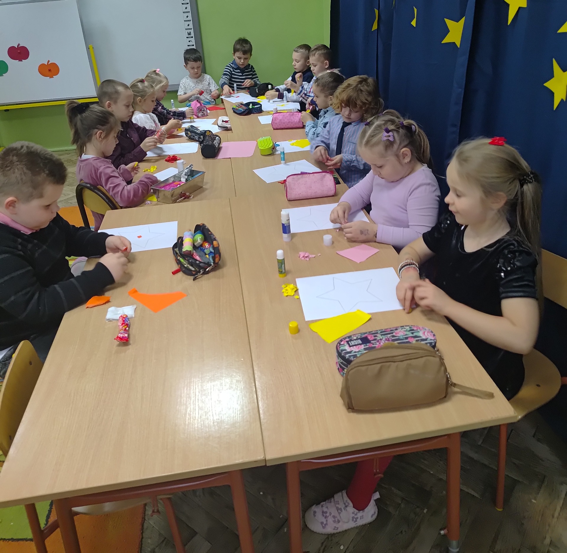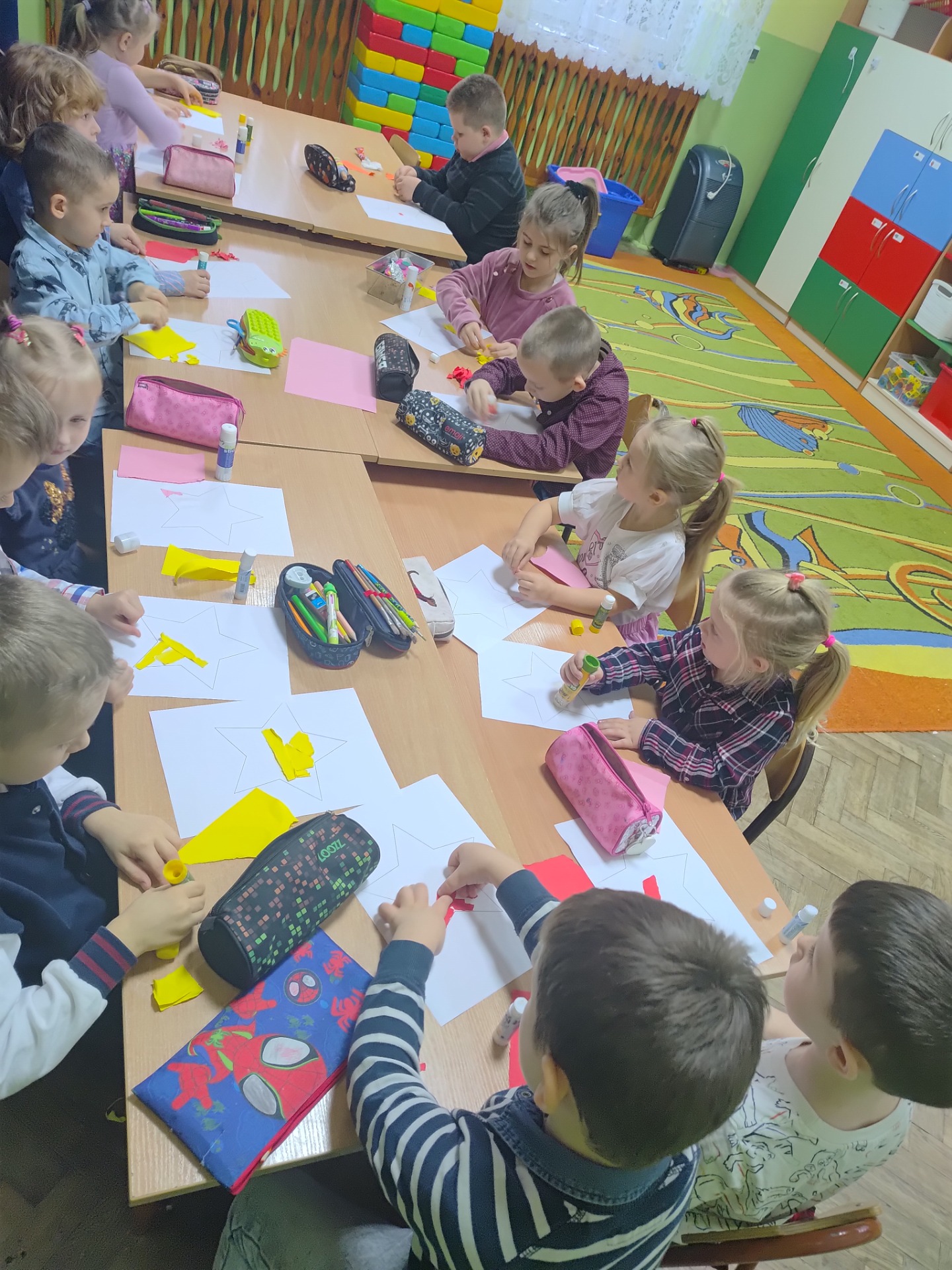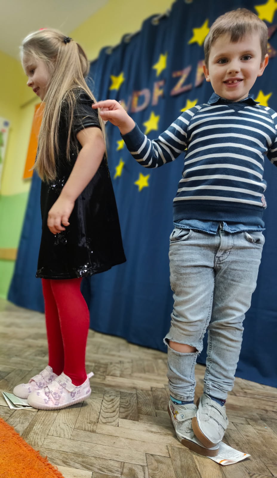 Dnia 27 listopada w naszym przedszkolu celebrowaliśmy Andrzejki. Wszystkie dzieci przyszły ubrane w odświętne stroje. Najważniejszym punktem dnia były andrzejkowe wróżby. Przedszkolaki z zaangażowaniem losowały karty przyszłości, odkrywając, kim zostaną, gdy dorosną. Dzieci odkryły także, jakie prezenty przyniesie im w tym roku Święty Mikołaj. Nie mogło zabraknąć wspólnych tańców, które rozgrzały atmosferę. Szczególną popularnością cieszyła się zabawa na gazecie. Ten taniec wymagał od przedszkolaków sprytu, ponieważ z każdą chwilą przestrzeń do tańca stawała się coraz mniejsza. Aby wystarczyło sił do dalszej zabawy, przedszkolaki posiliły się smacznymi przekąskami. Na zakończenie tej magicznej uczty, każde dziecko wykonało piękną pracę plastyczną – lśniącą gwiazdkę, która jest pamiątką tego wyjątkowego dnia. Następnie wszyscy zebrali się w kręgu, aby wspólnie zatańczyć pożegnalny taniec. Serdecznie dziękujemy Rodzicom za pomoc w przygotowaniu pysznych przekąsek. Wasze wsparcie jest niezastąpione.