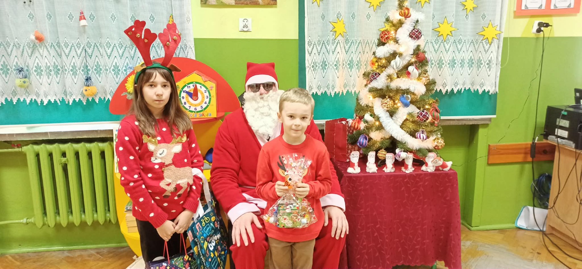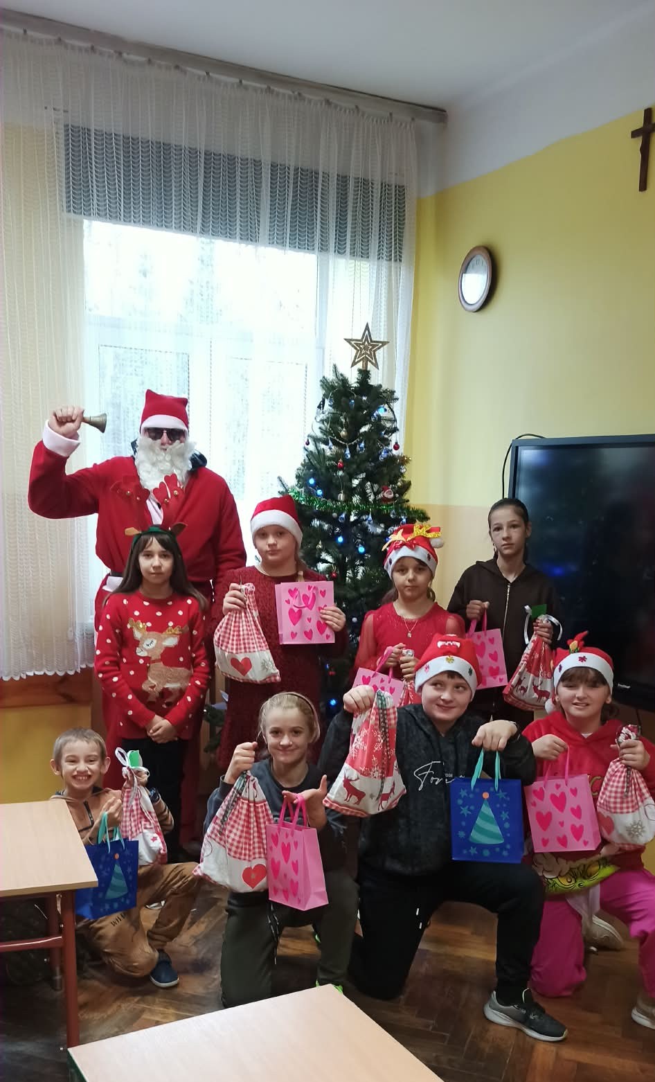 Mikołaj odwiedził wszystkie klasy, a jego pomocnik elfik rozdawał uczniom słodkie cukierki, które sprwiły dzieciom mnóstwo radości. Dzieci chętnie opowiadały o prezentach, które chciałyby znaleźć pod choinką. Nie zabrakło również wspólnych zdjęć i wesołych piosenek.