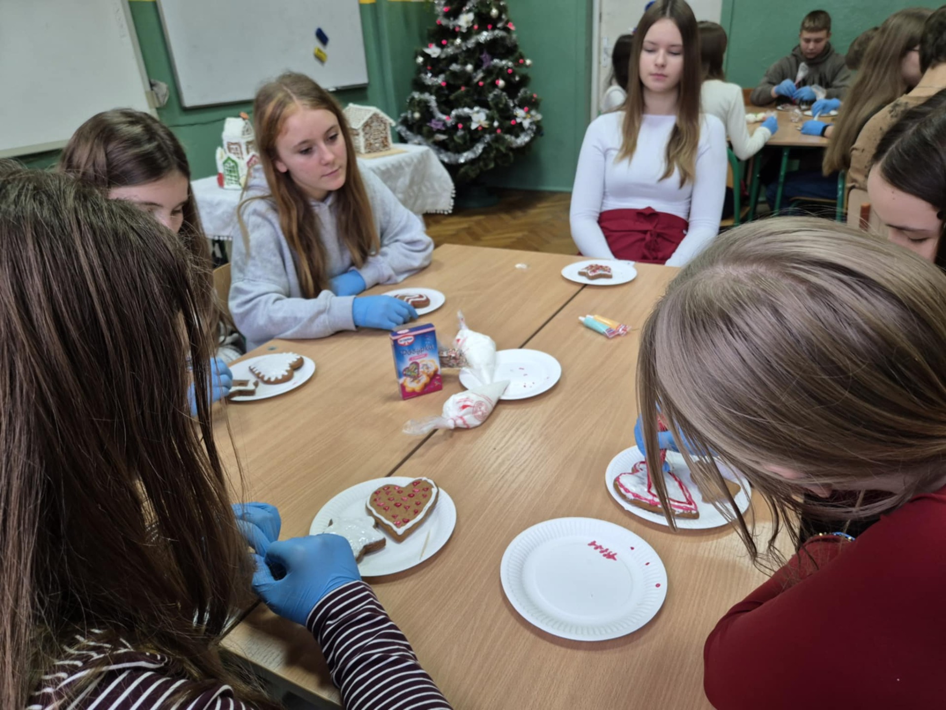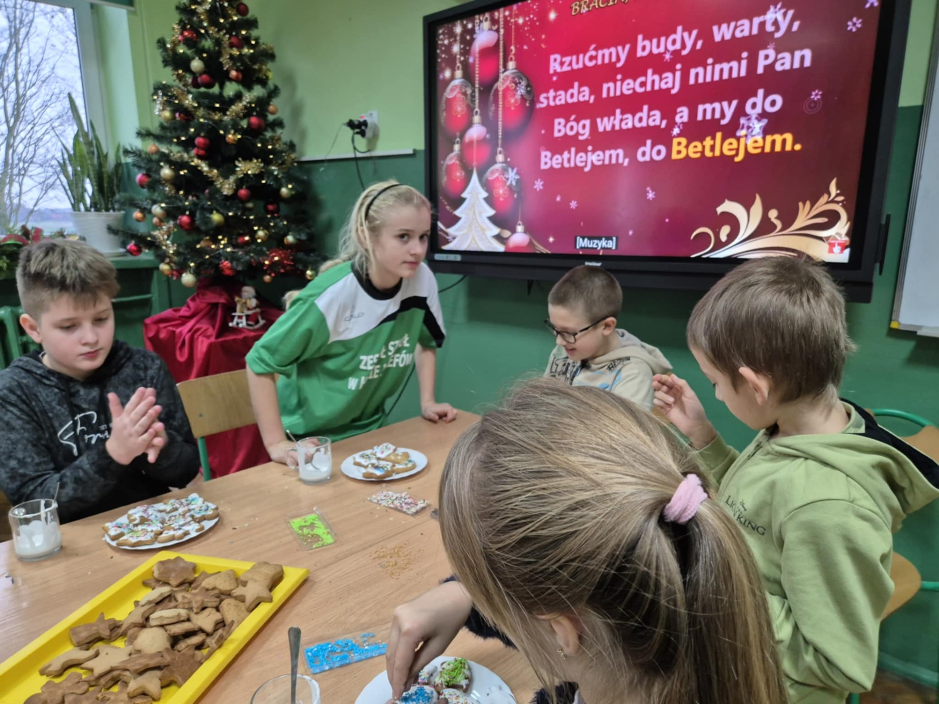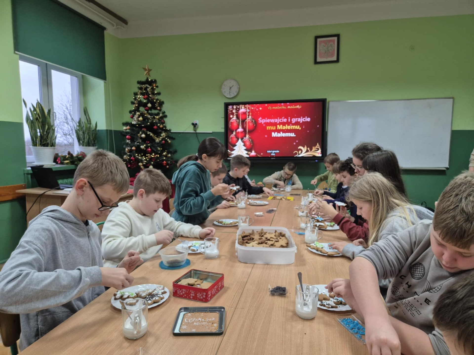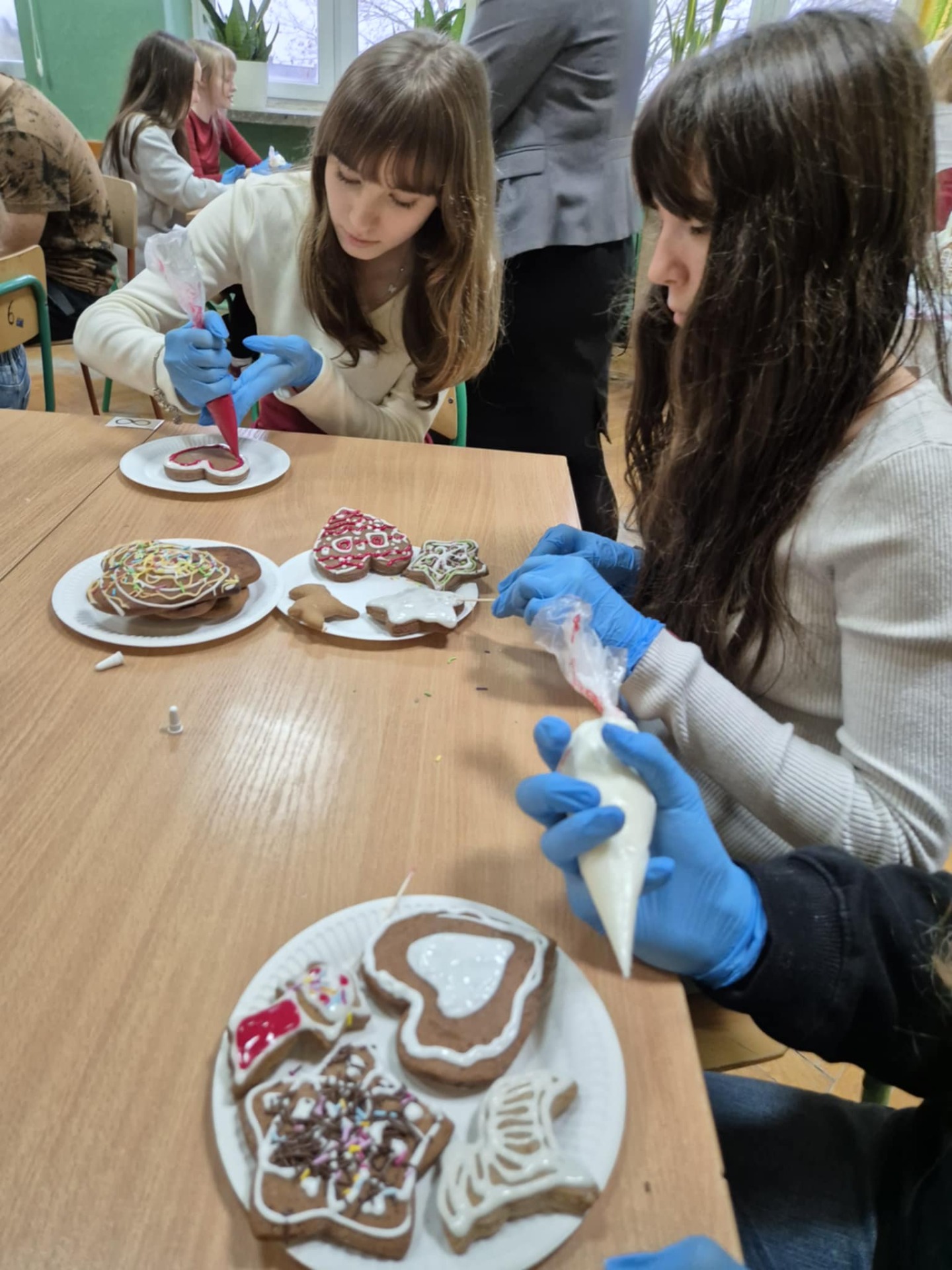 Nie zabrakło również zdobienia pierników – dzieci ozdabiały je lukrem i barwnymi posypkami, tworząc prawdziwe małe dzieła sztuki. Wspólna praca i pełna ciepła atmosfera sprawiły, że dzisiejsze warsztaty były nie tylko okazją do rozwijania kreatywności, ale także do świetnej zabawy.