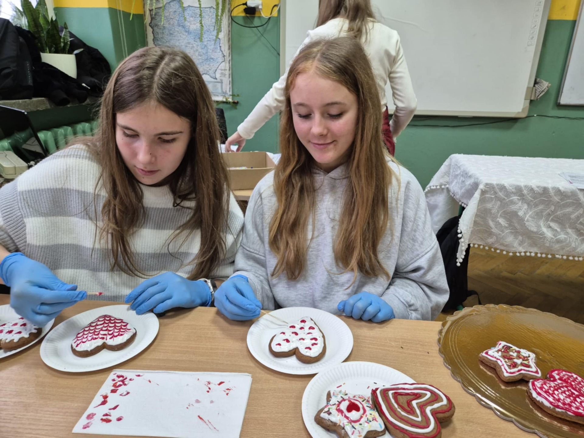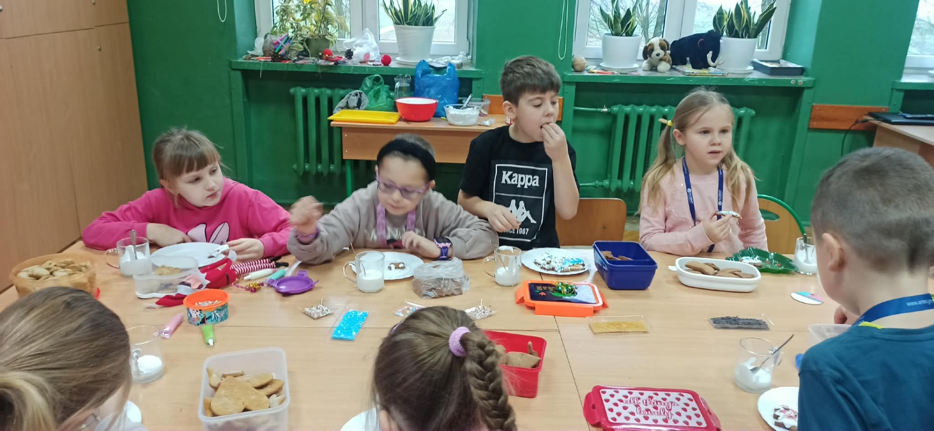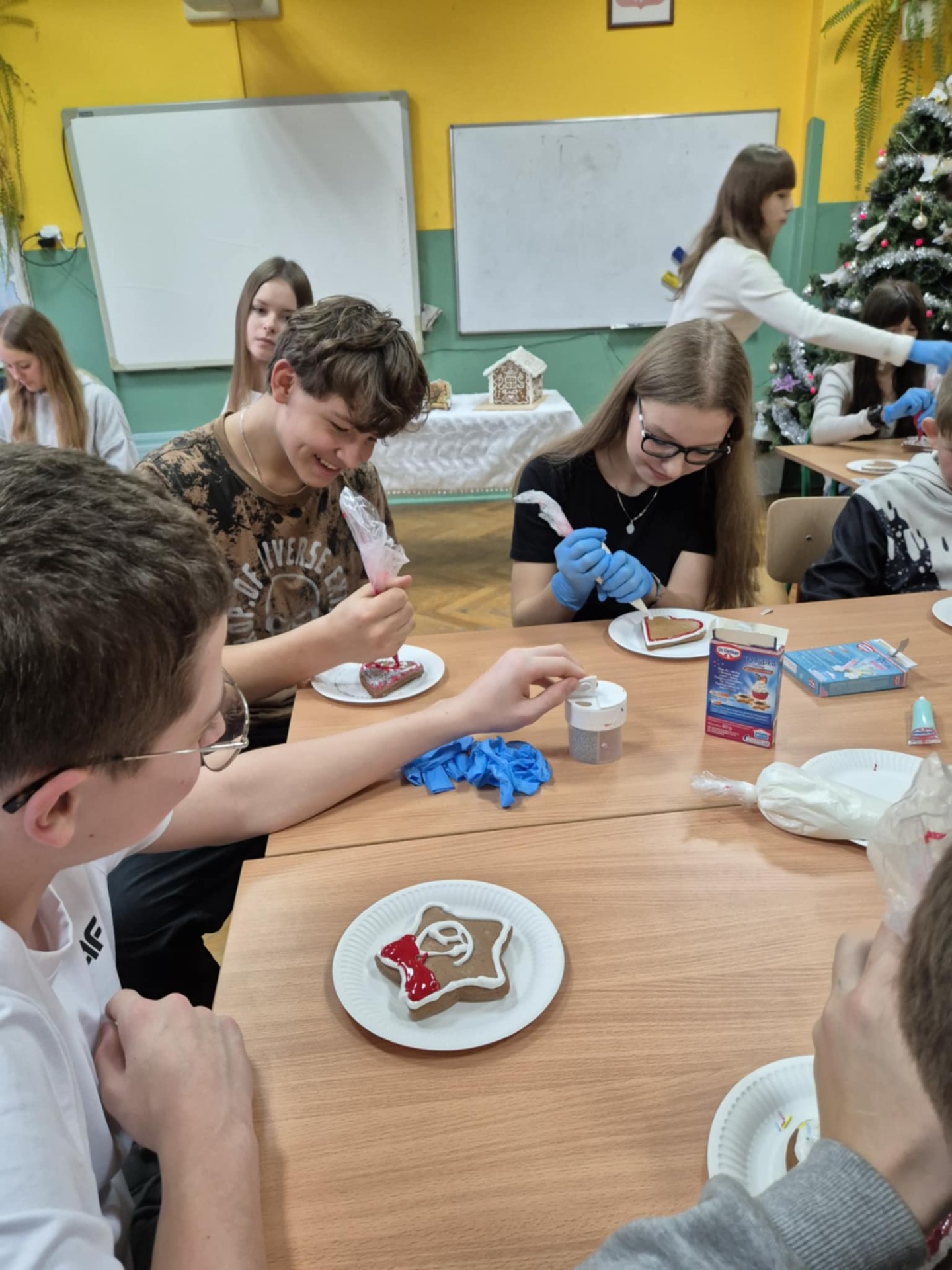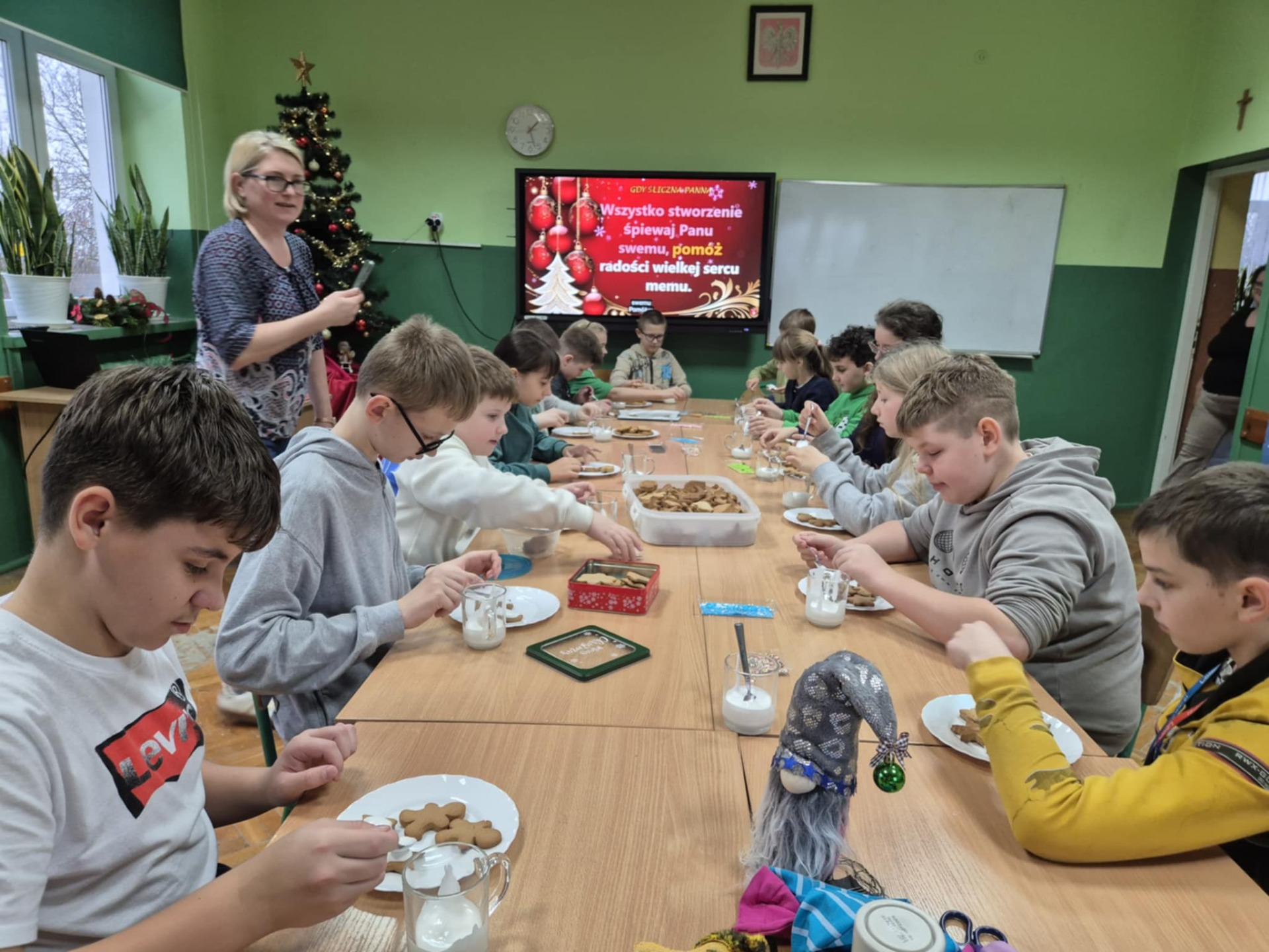 Nie zabrakło również zdobienia pierników – dzieci ozdabiały je lukrem i barwnymi posypkami, tworząc prawdziwe małe dzieła sztuki. Wspólna praca i pełna ciepła atmosfera sprawiły, że dzisiejsze warsztaty były nie tylko okazją do rozwijania kreatywności, ale także do świetnej zabawy.