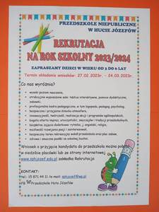 REKRUTACJA DO PRZEDSZKOLA 2023/2024
